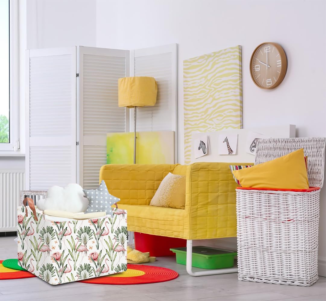 Feature: The storage basket equip with two handles making it portable and easy to move,and it can be folded when you do not want to use it at the time.