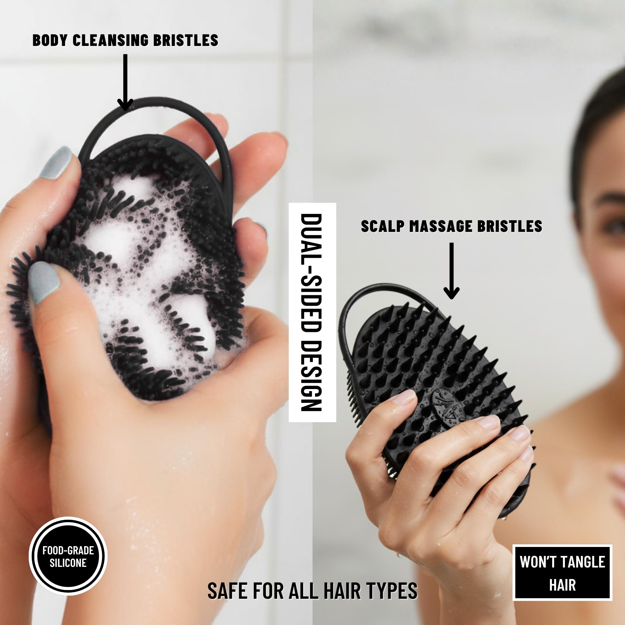 ★ SUITABLE FOR SENSITIVE SCALPS - Gentle enough for daily use without irritation. Perfect for those with tender scalps or sensitive skin. Provides thorough cleansing without harsh scrubbing. Soft bristles offer comfort during use