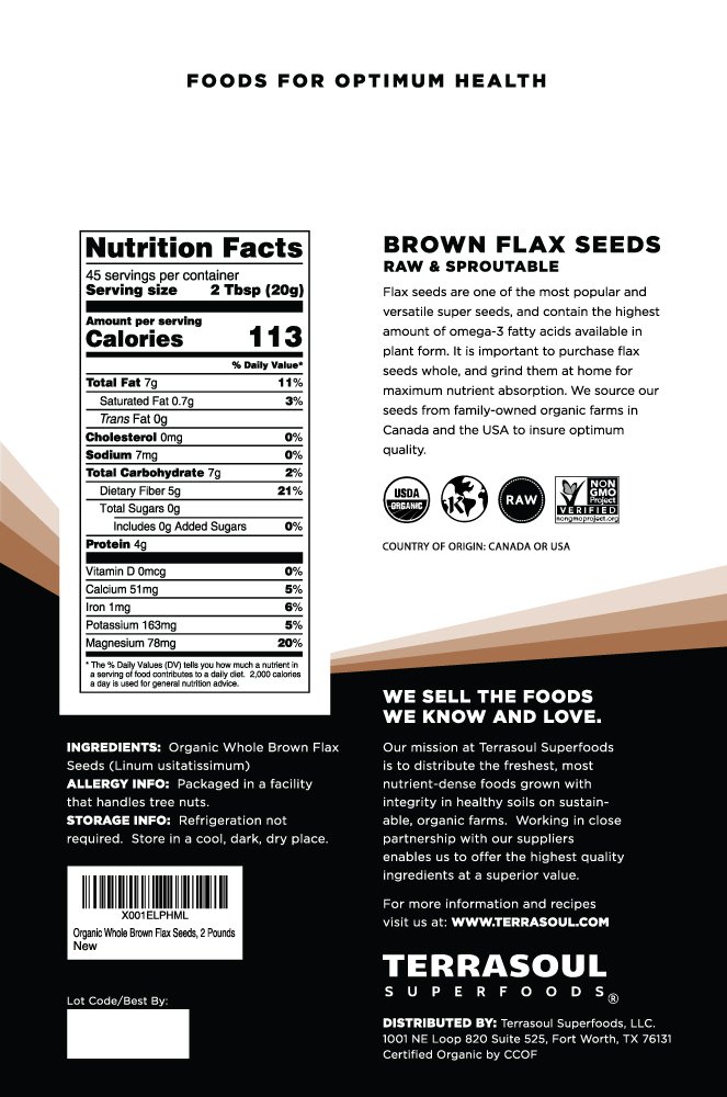 Terrasoul Superfoods Brown Flax Seeds, 2 Pounds
