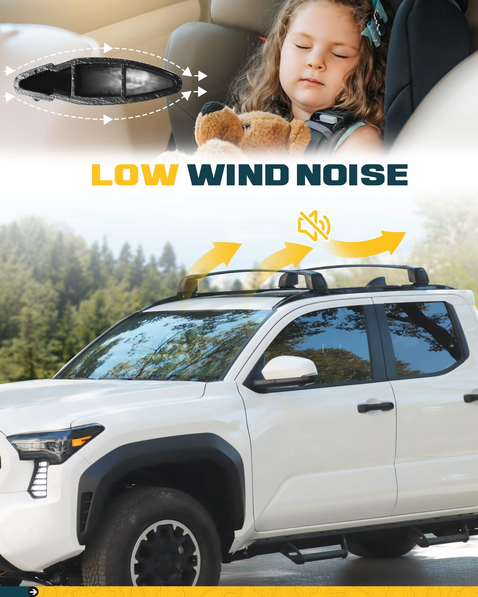 Easy 30-Minute Installation: Simple setup with all necessary hardware included.No need to drill holes and prepare additional tools. Engineered to minimize wind noise for a comfortable driving experience. Thick rubberized base effectively dampens shock and protects your roof