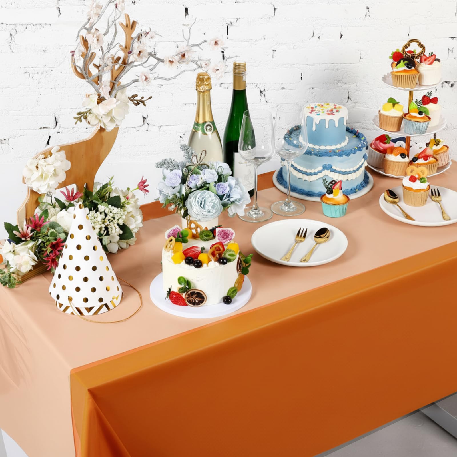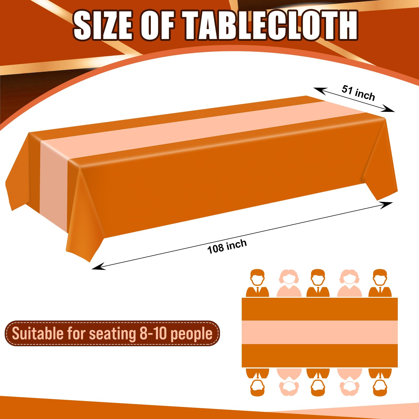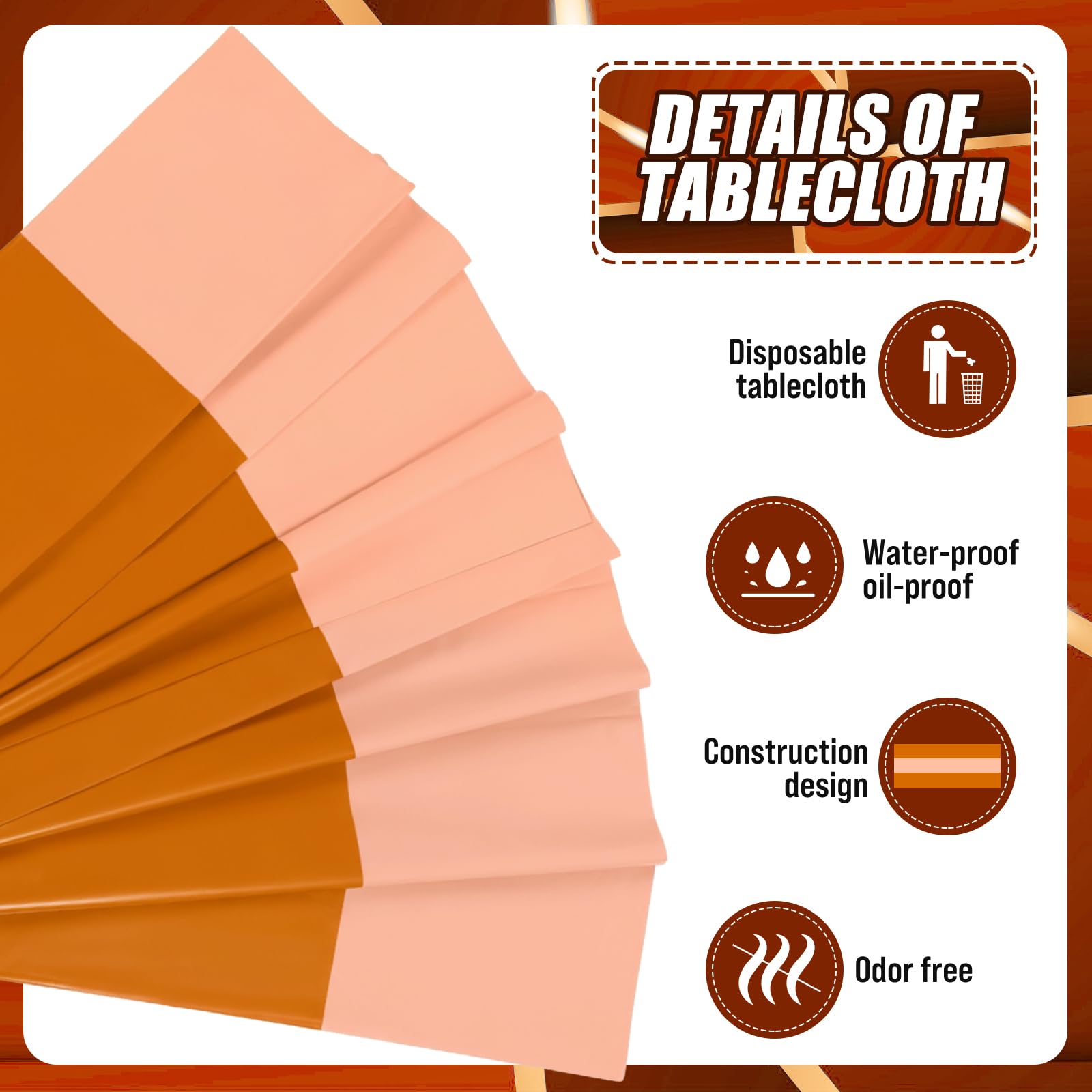 Elegant Design: the orange and brown design of these plastic table cloth disposable adds elegance to any dining experience, you can use them directly or cut them to decorate your wedding table or desk according to your needs and preferences; Your guests will be impressed with the sophisticated atmosphere they create