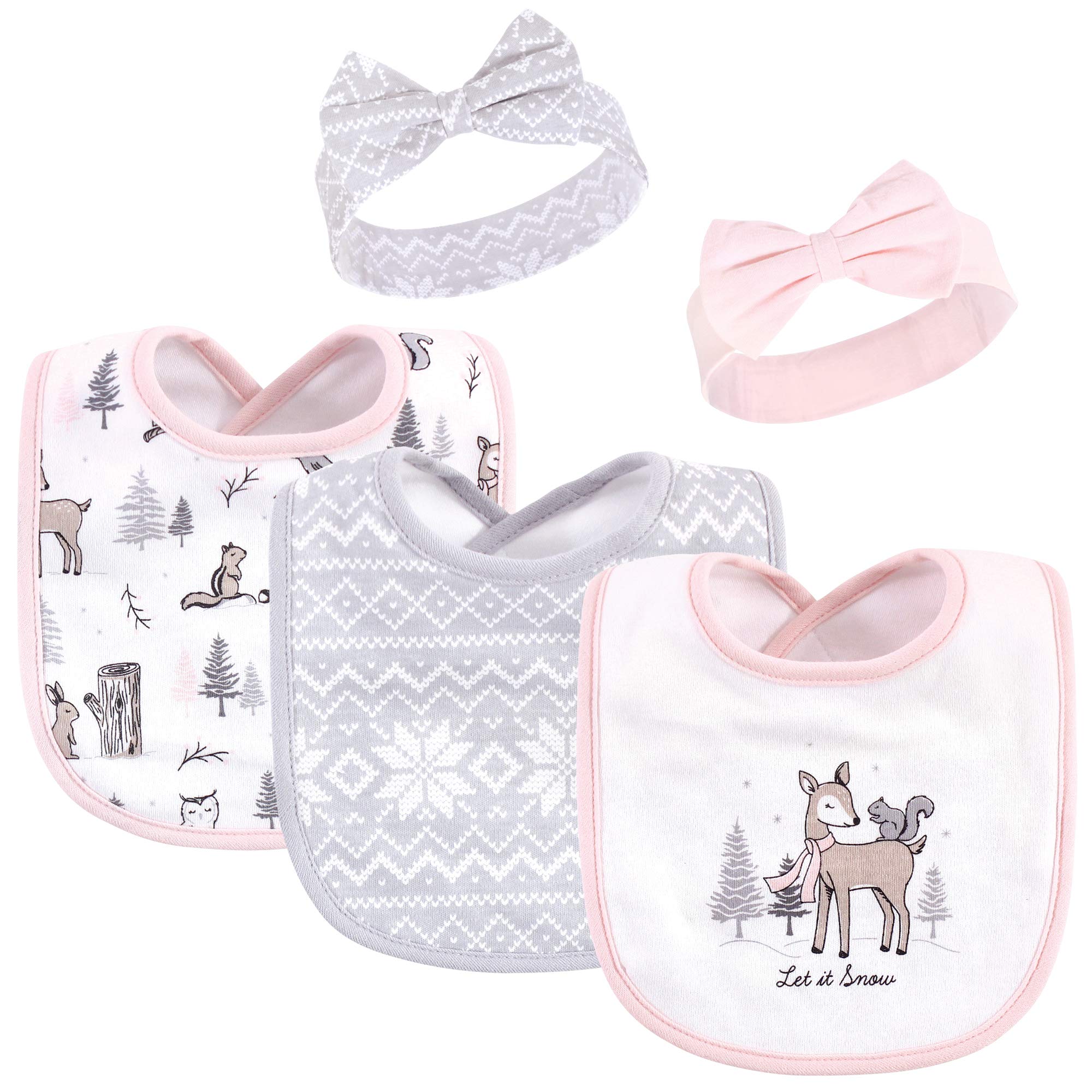 Bib made with multi-layered, gentle fabric to absorb drools and spills; headbands are comfortable, cozy and will keep her looking stylish and beautiful