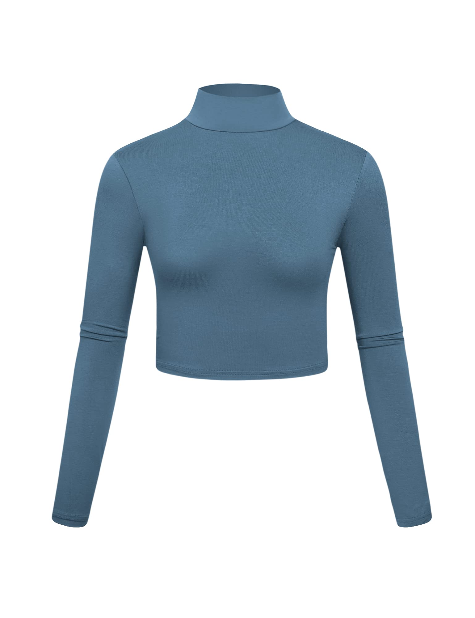 Style: Design with 2.4in mock turtleneck collar, the neck can easily stay up but not choking. Slim fit crop top hugs your curves perfectly. Long enough and wonβt shows your sports bra when workout.
