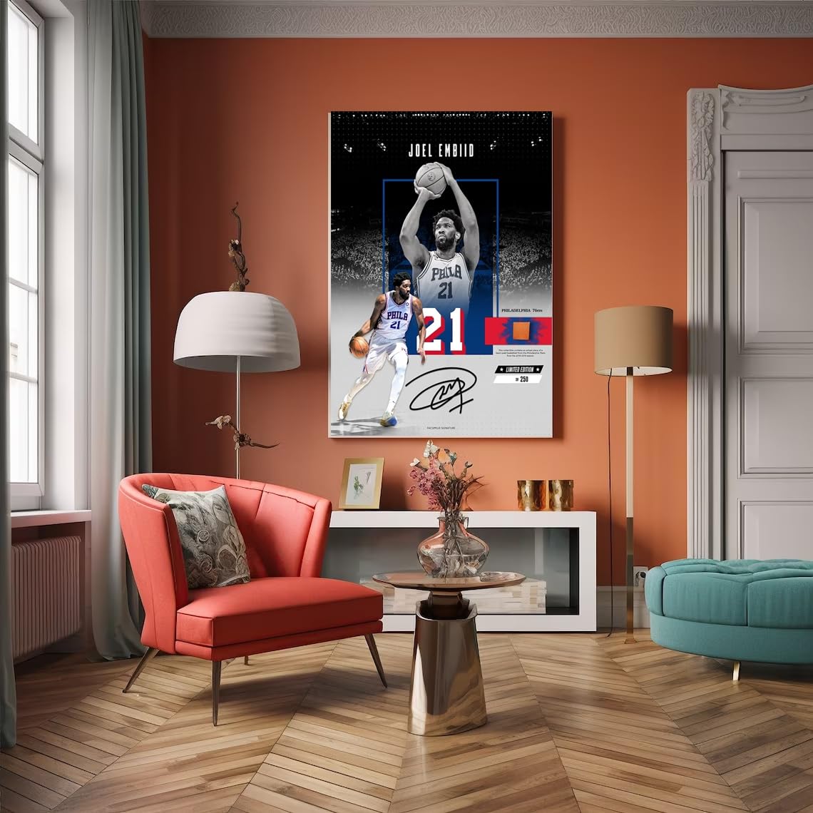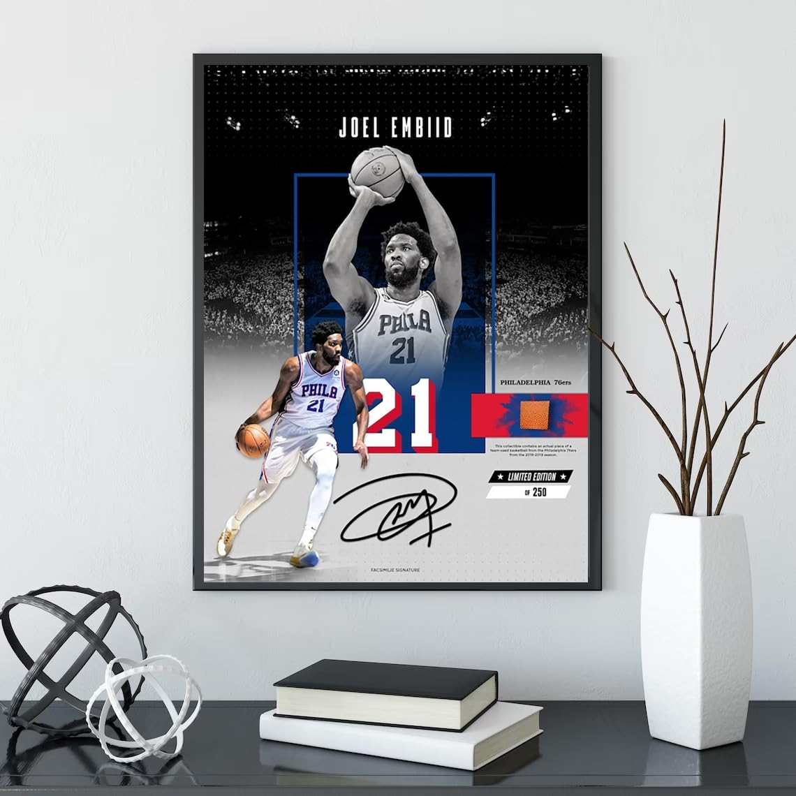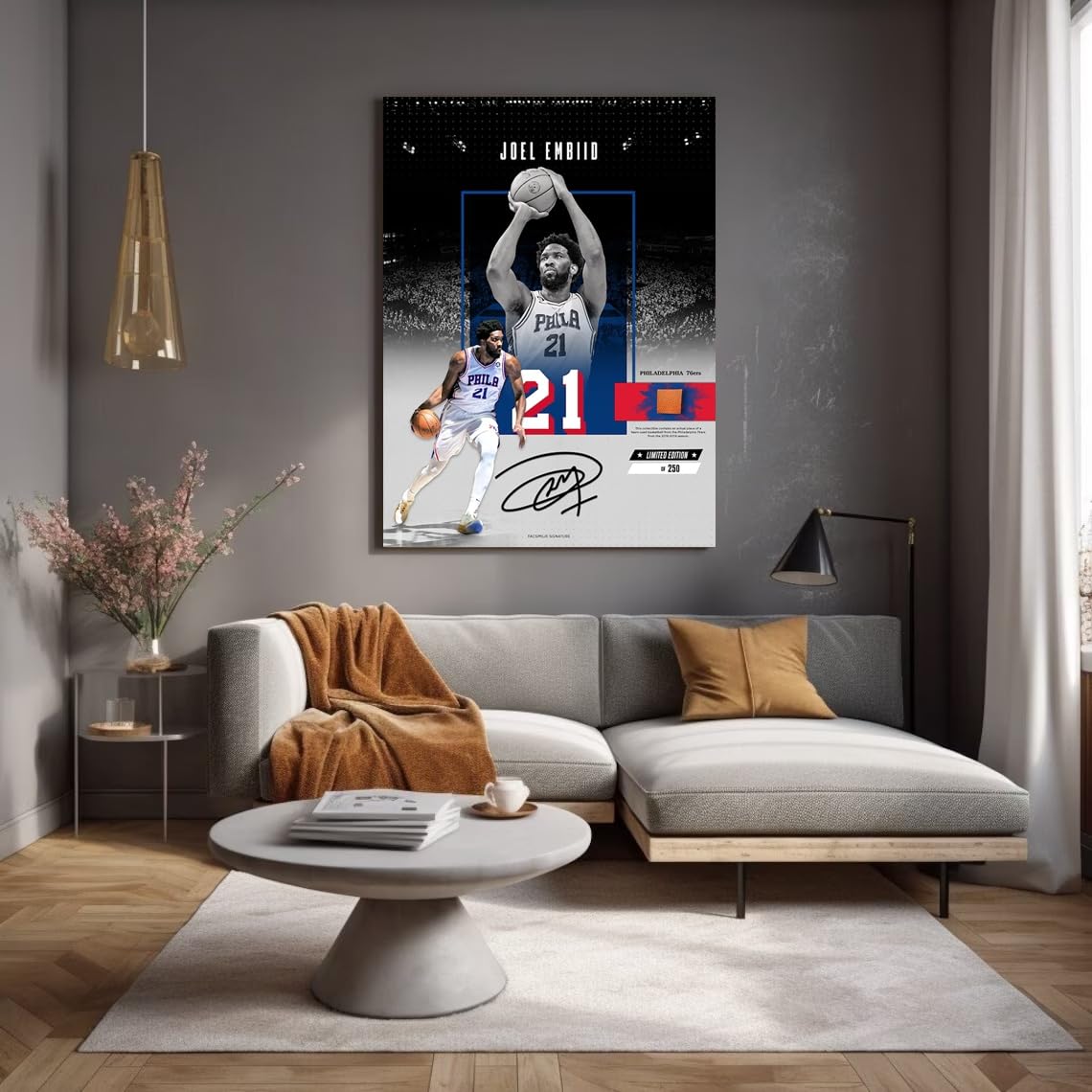 Canvas Rolls: If You Choose Canvas Rolls, Please Note That We Will Roll The Canvas And Ship It To You, It Will Not Appear On The Frame. The Image Is The Effect Of Installing The Frame. High-Quality Canvas Hd Pictures, Durable And Waterproof. Joel Embiid Signed Poster The Vivid Scenes Will Illuminate Your Walls. Can Make Your House Look Vibrant And Creative.