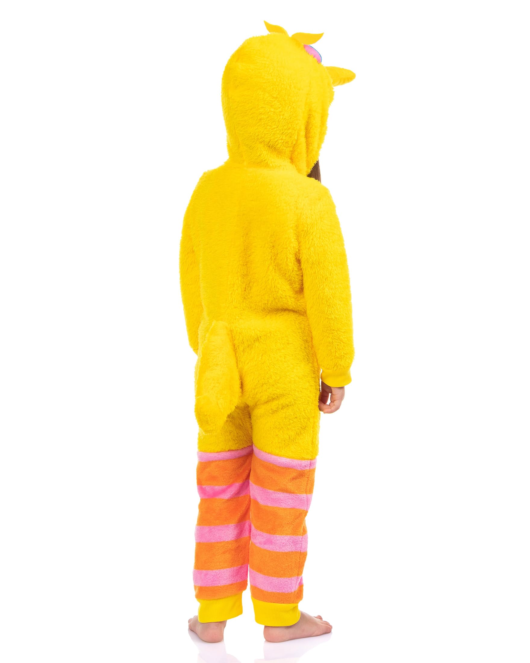 Description This Big Bird zip-up union suit brings the world of Sesame Street into your toddler's wardrobe. Featuring a 3D hood with Big Bird's tufted hair, wide eyes, and beak, plus soft tail and leg warmer details, this pajama-style outfit turns everyday comfort into something full of character. A neck-to-leg zipper allows for easy on-and-off changes, while a button-snap cover keeps the top of the zipper secure. Crafted from 100% polyester, this piece is machine washable and gentle on sensitive skin. Sesame Street continues to inspire curiosity, learning, and joy for generations.
