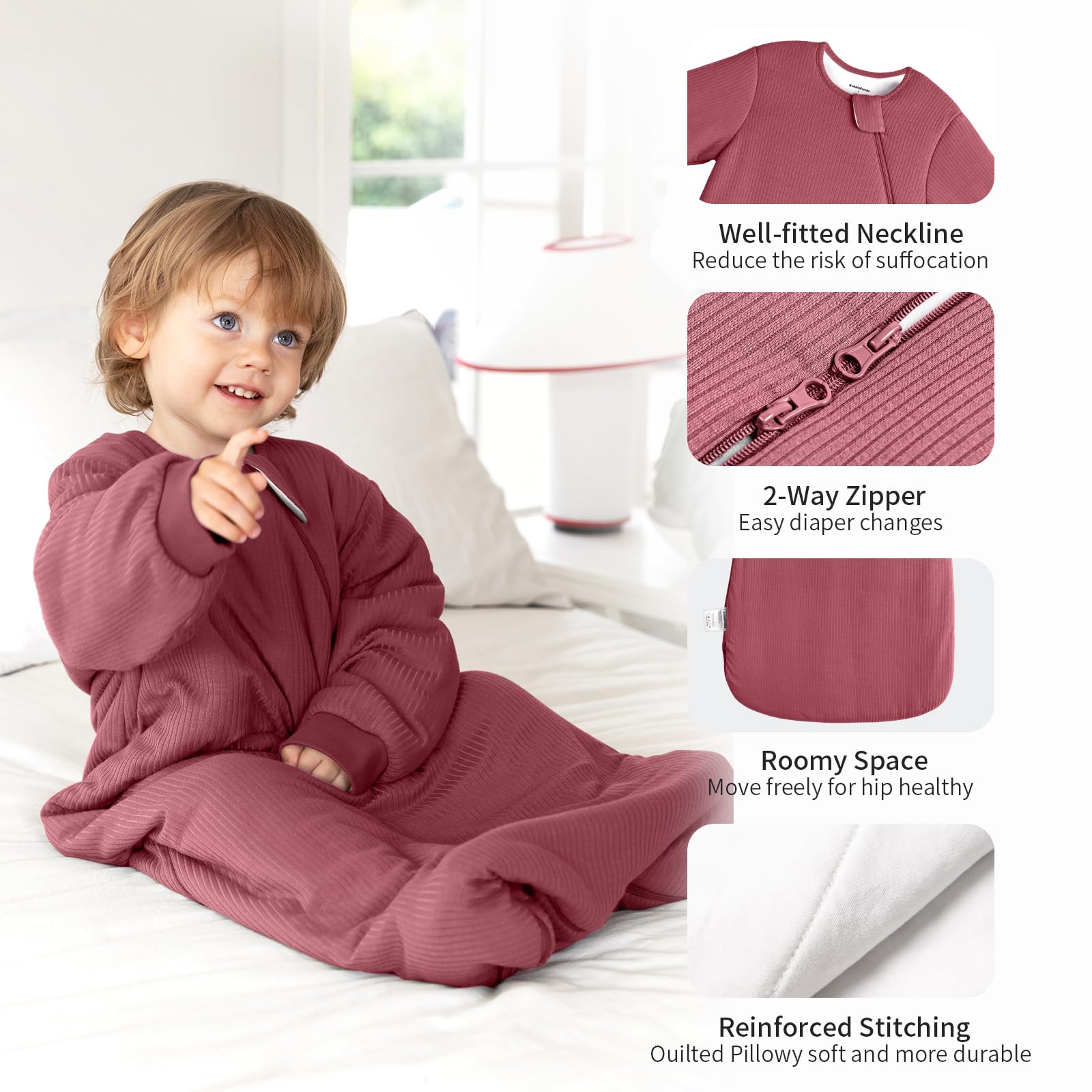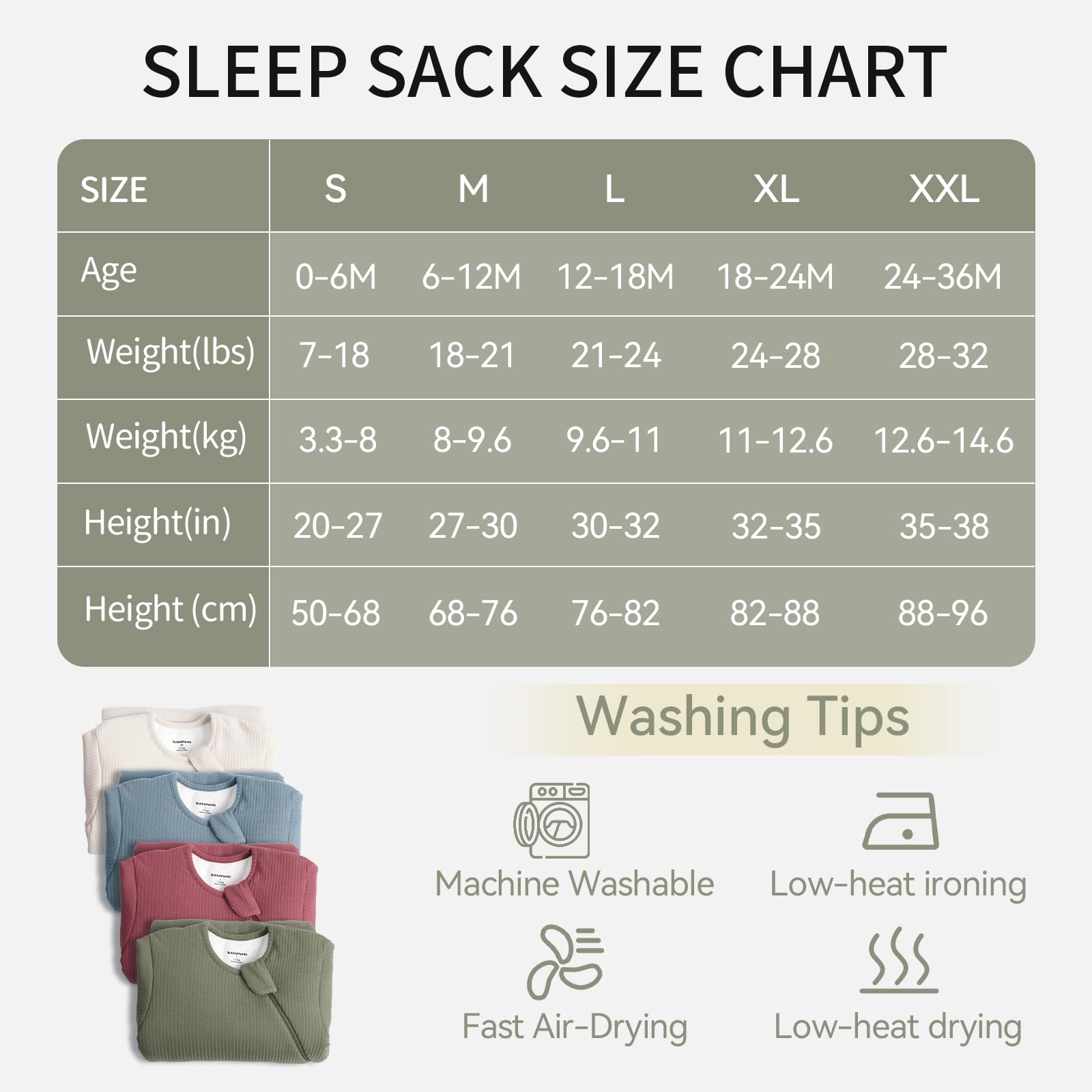 【1.5x Breathable】Our sleep sacks are made of Rayon Made from Bamboo, which is breathable, in addition, the ribbed design makes it more breathable, for heat regulation and moisture wicking, helping to keep your baby comfortable and dry, making it easier for parents and babies alike.