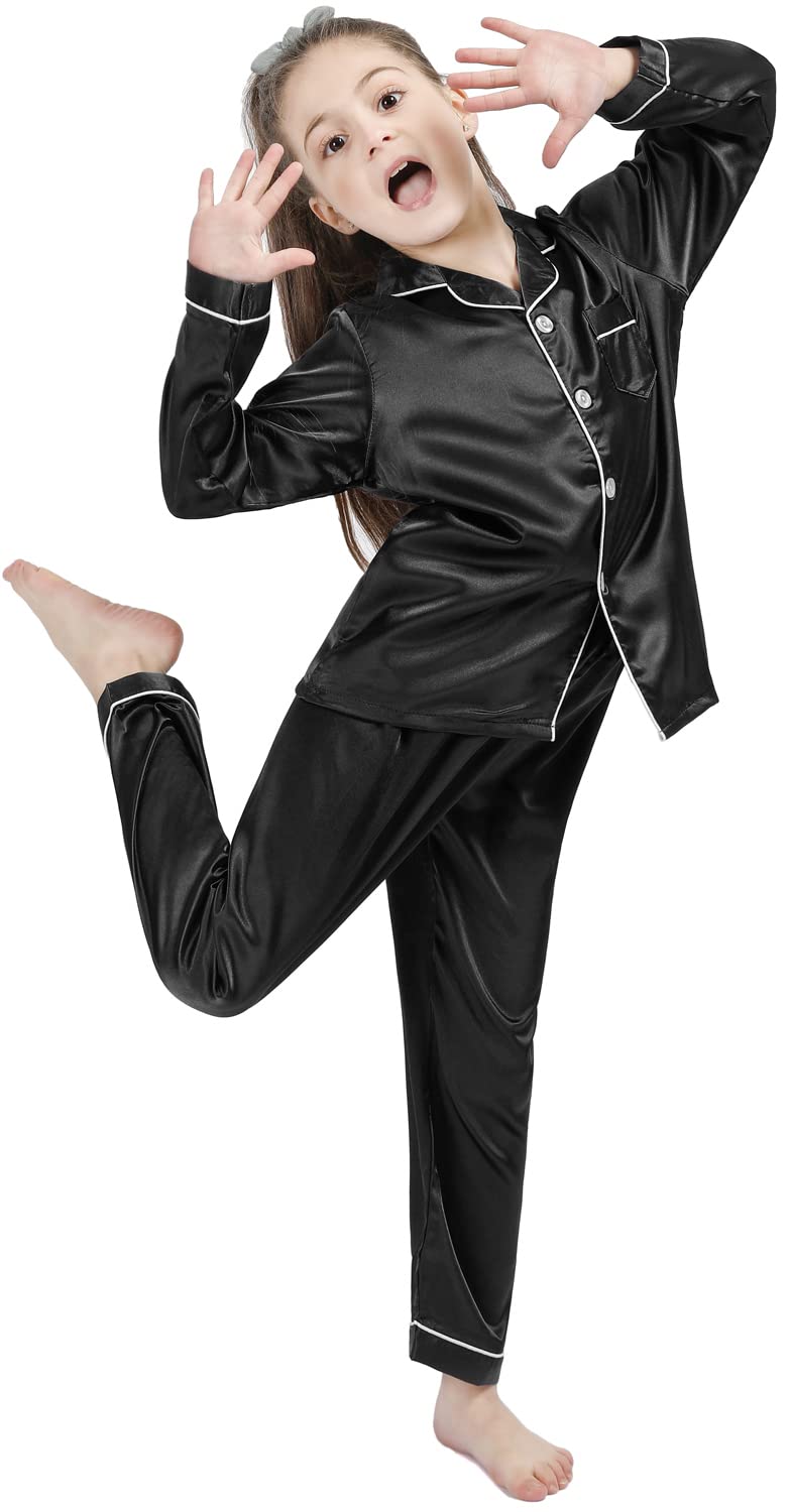 ✓ Material: silky satin. Light weighted,luxurious,soft & comfortable. Suitable for everyday use in Spring Summer and Autumn(Fall).Pajamas sets are for children both girls and boys.