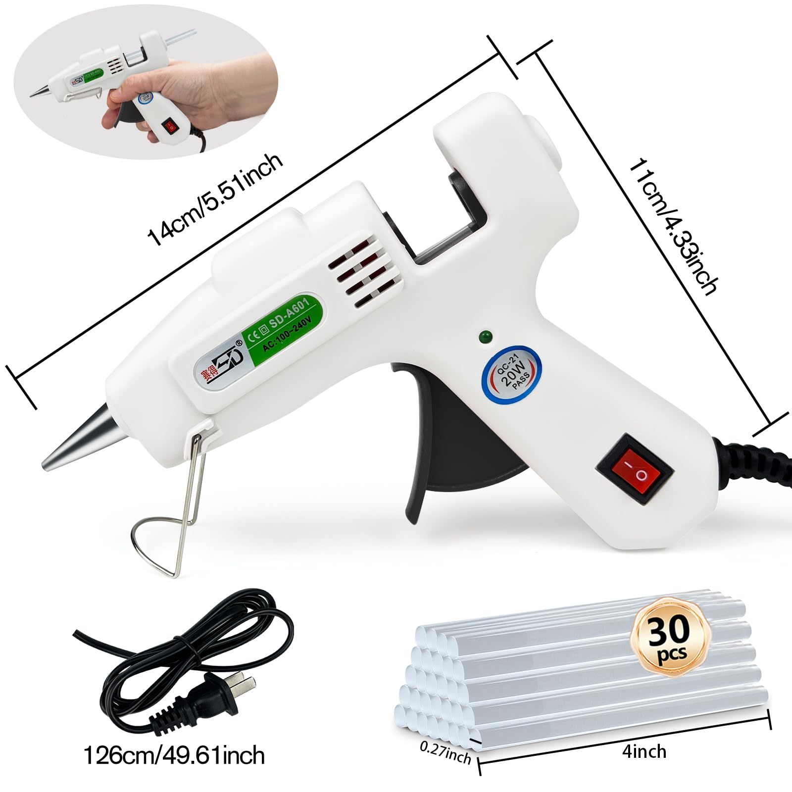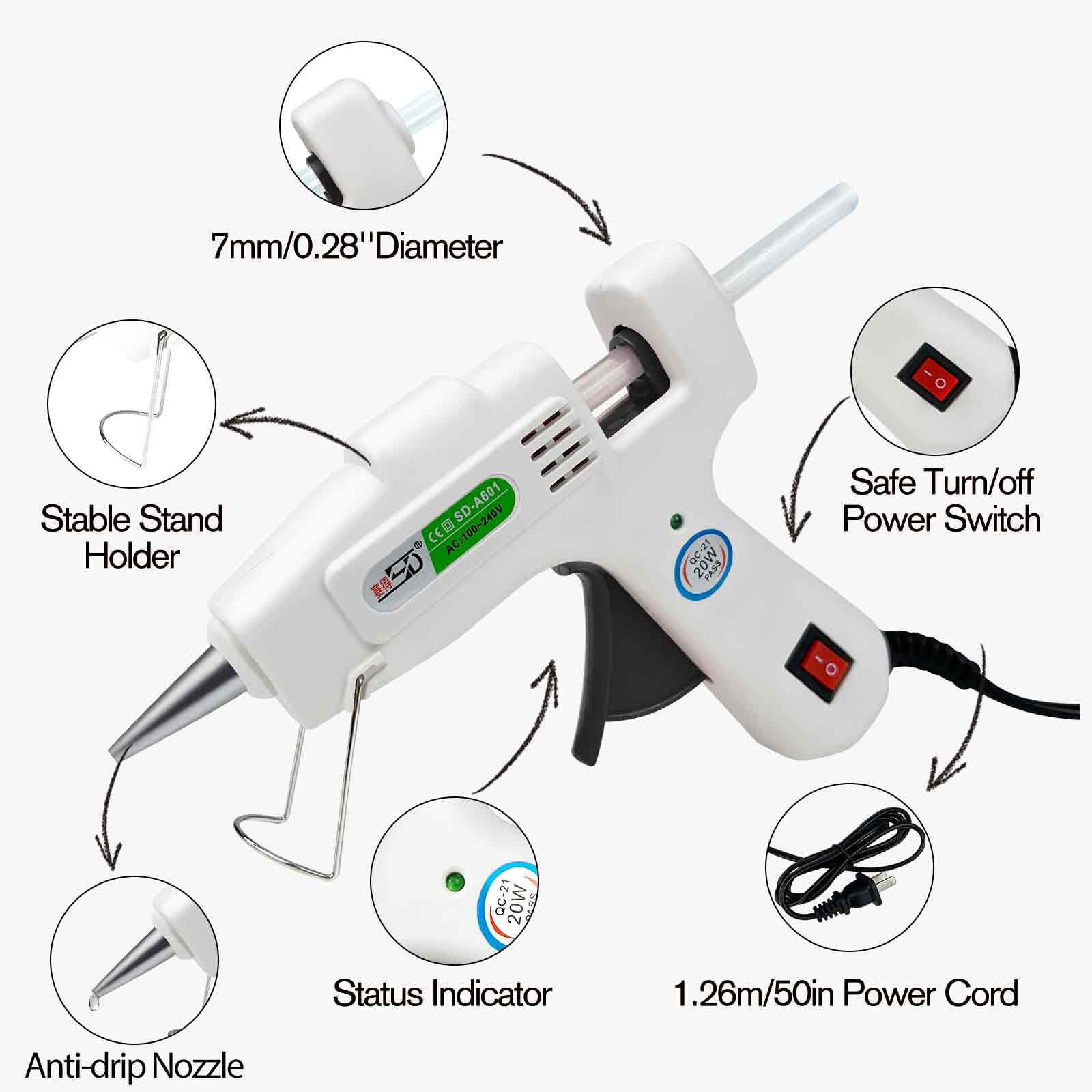 ✔ Fast Preheating - 20w glue gun features a fast 1 minutes warm up time; Infused with a PTC ceramic heating system, mini hot glue gun heats up and releases glue within 1-2 minutes and then keep the temperature constant automatically