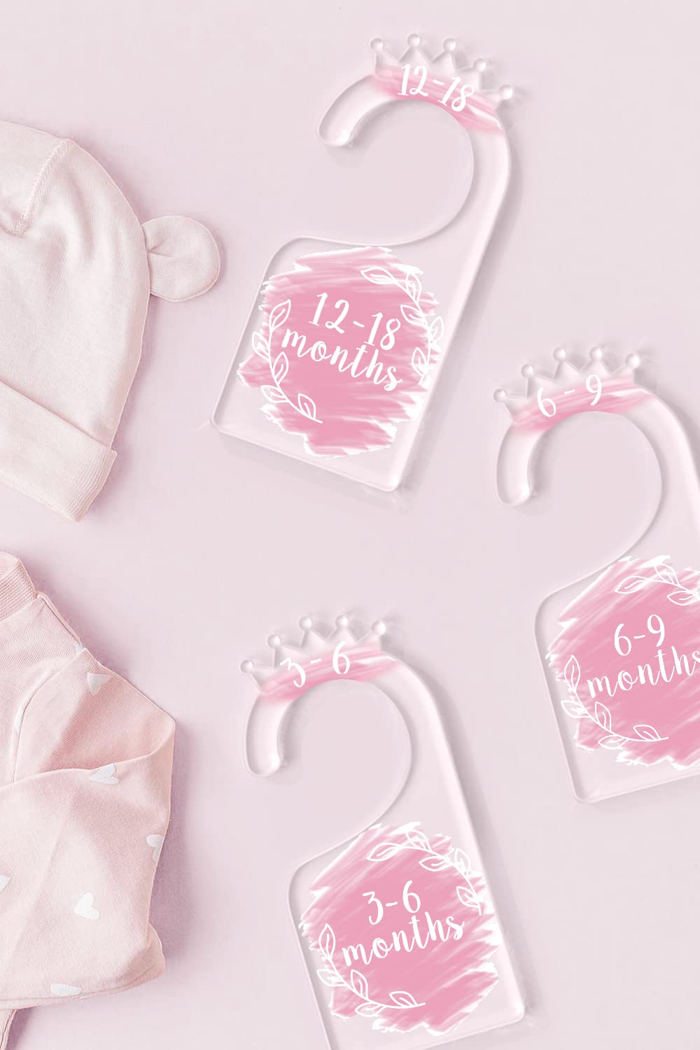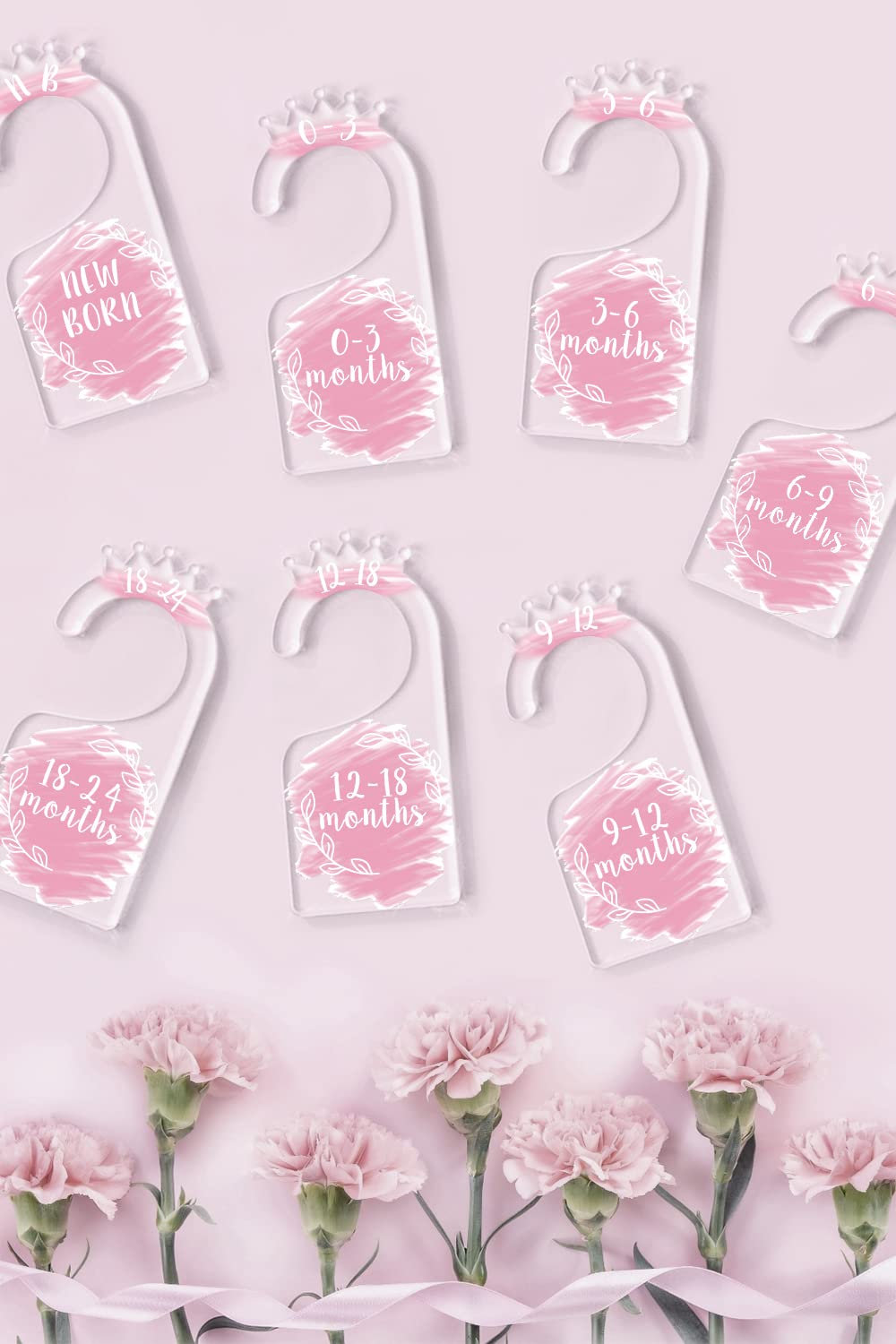 7 STAGES SET: Each pink baby dividers for closet size 7.1”x3.2” fit all standard 1.25” closet rails, Including newborn, 0-3 months, 3-6 months, 6-9 months, 9-12 months, 12-18 months, 18-24 months