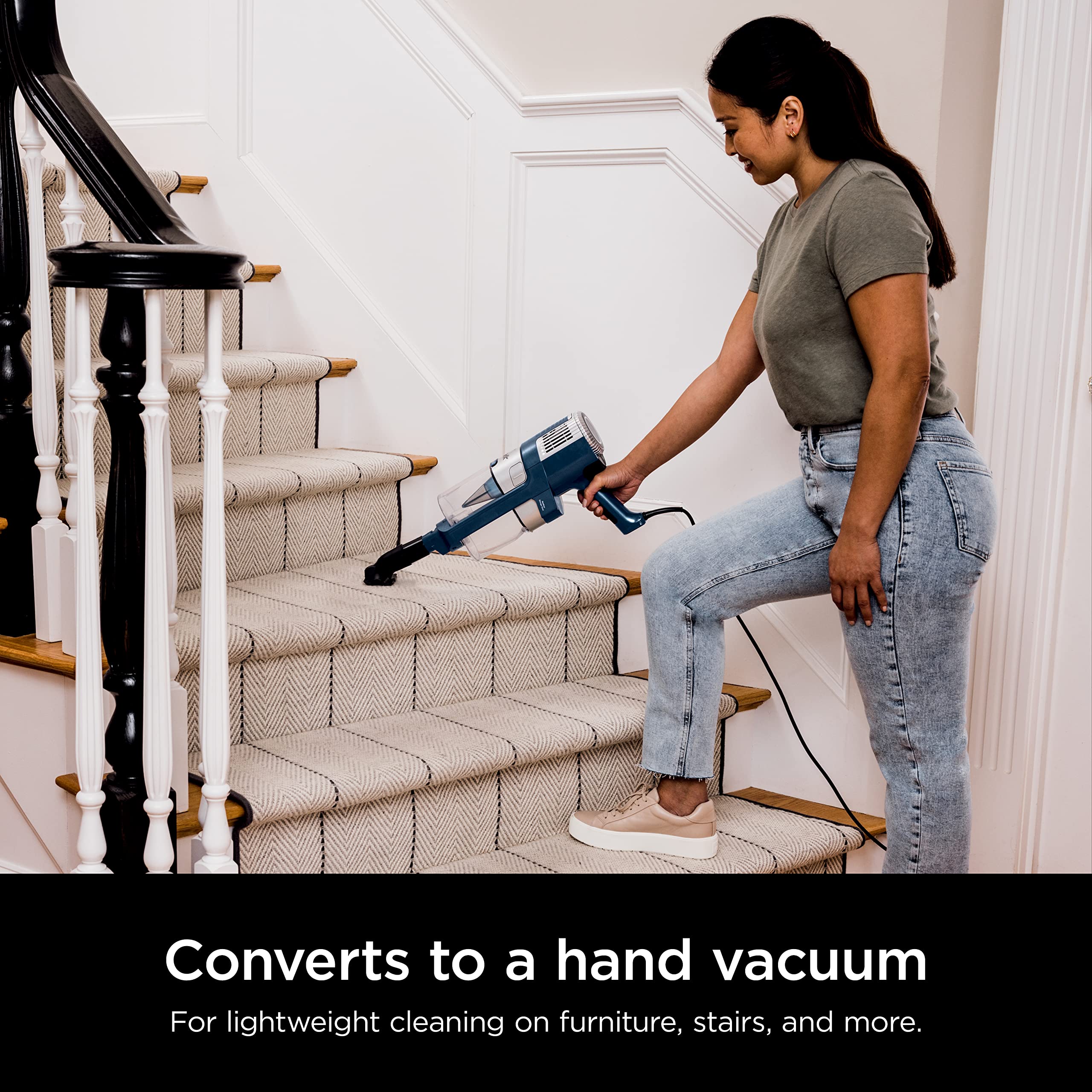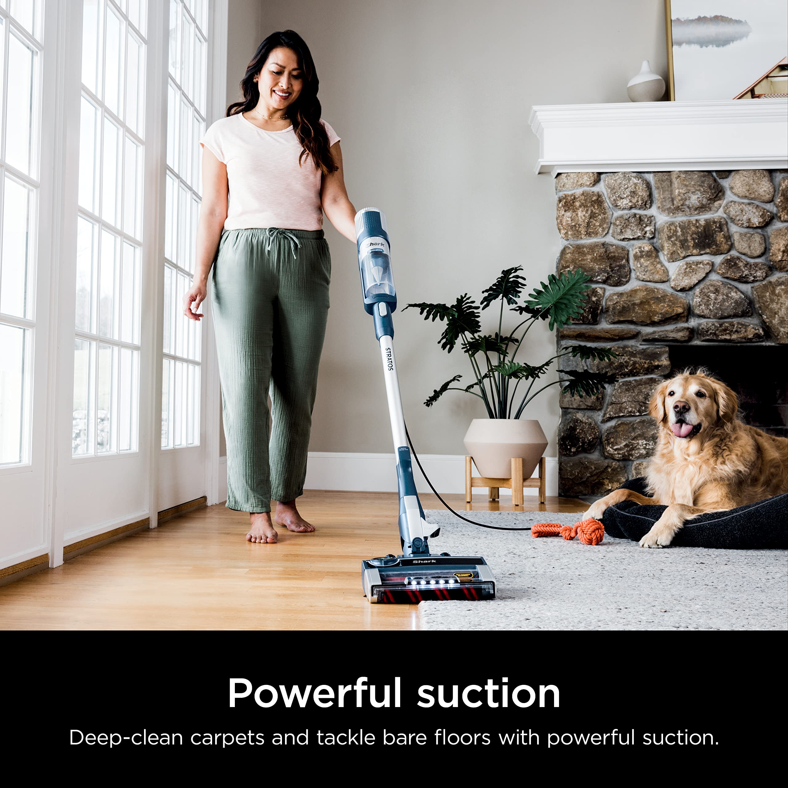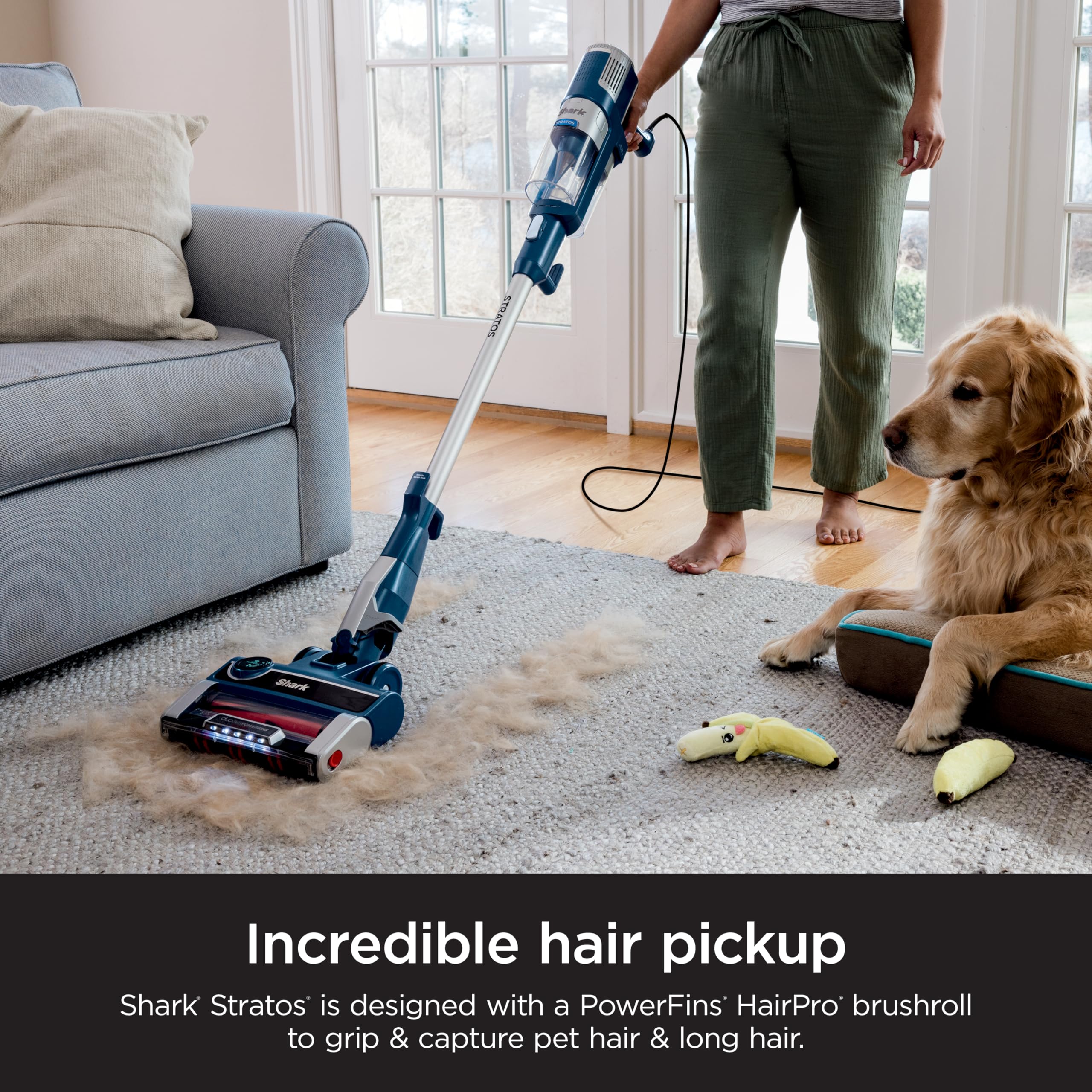 The Shark Stratos corded stick has ultra-powerful suction & hair pick up. It offers Shark’s advanced cleaning technology – a DuoClean PowerFins Hair Pro nozzle grips and captures more dirt, debris and hair, and Odor Neutralizer Technology guards against bad odors inside your vacuum. Plus, Anti-Allergen Complete Seal with HEPA filtration traps fine particles as you clean.