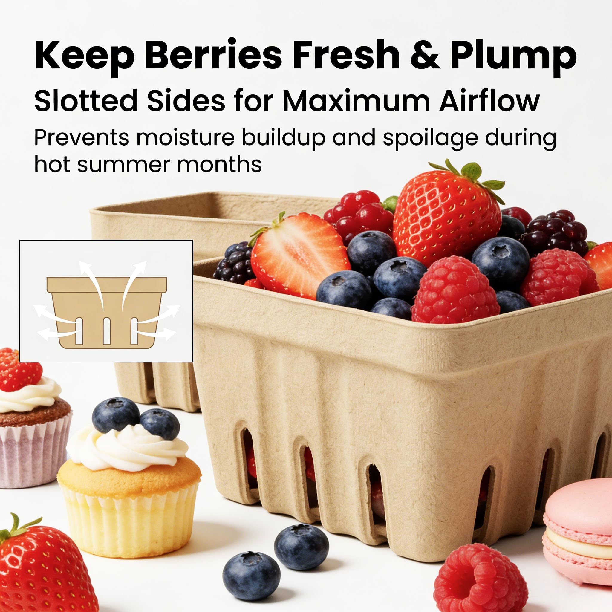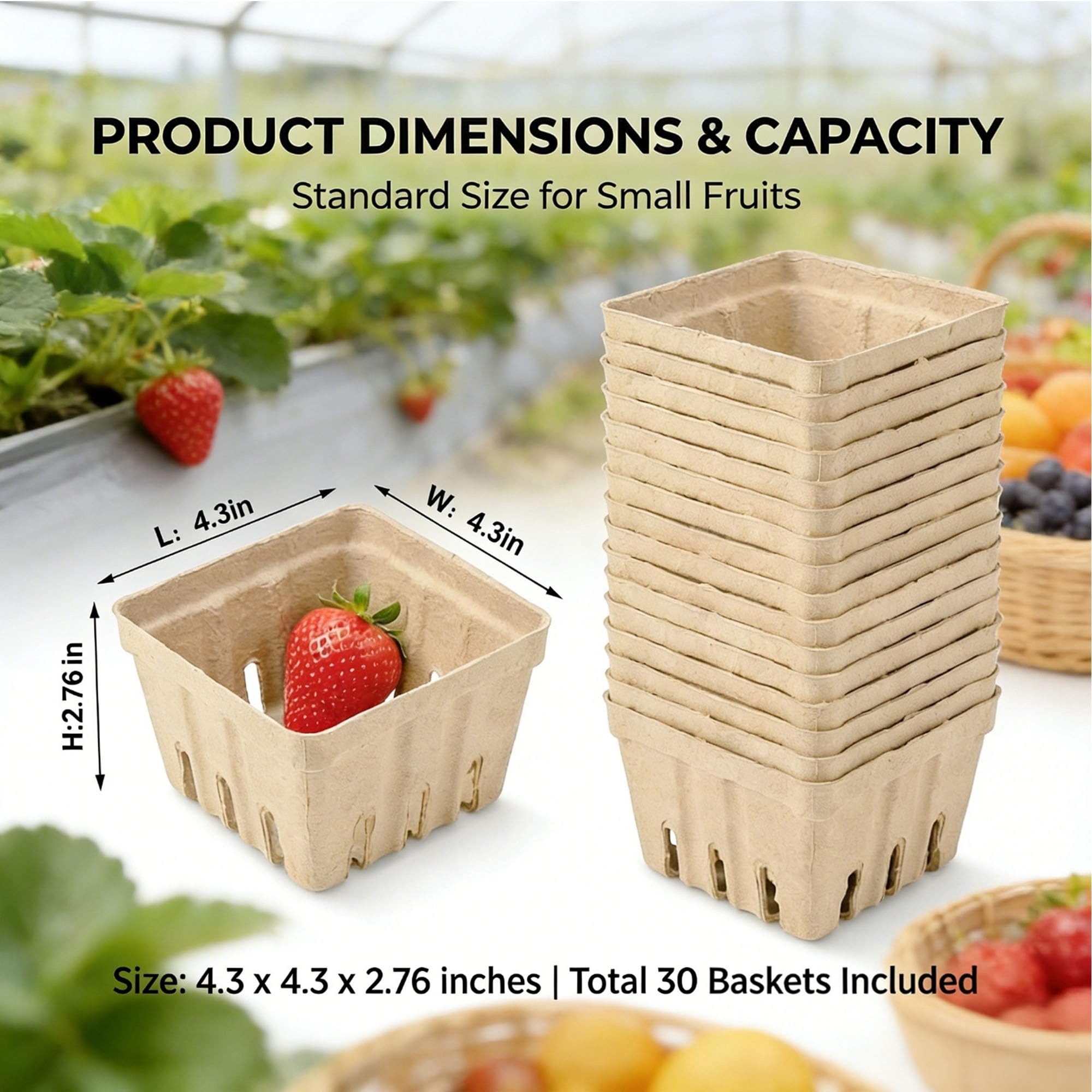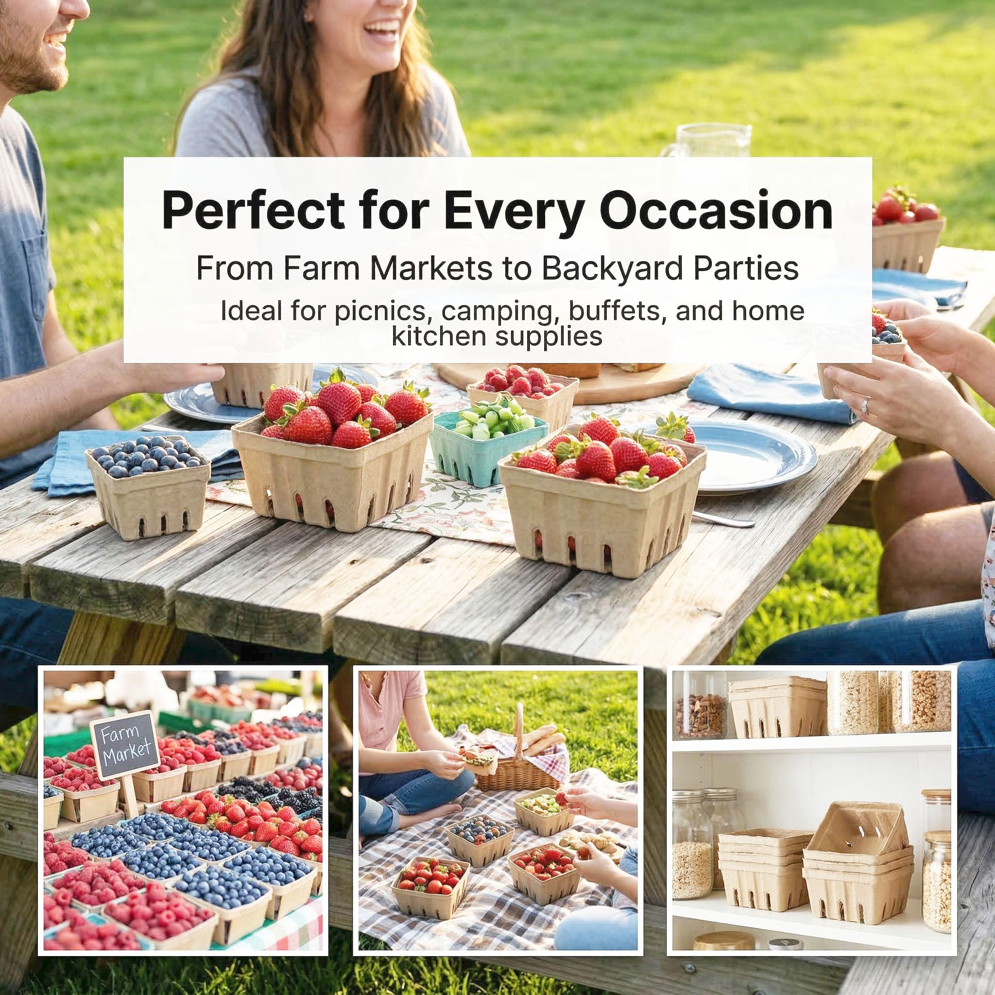 Application - The pulp fiber berry baskets are ideal for the backyard party, holiday party, BBQ, picnic, camping, buffet, farm, market, kitchen, restaurant, and many other indoor and outdoor occasions, which will make the food look more attractive, leaving a lasting impression on your guests