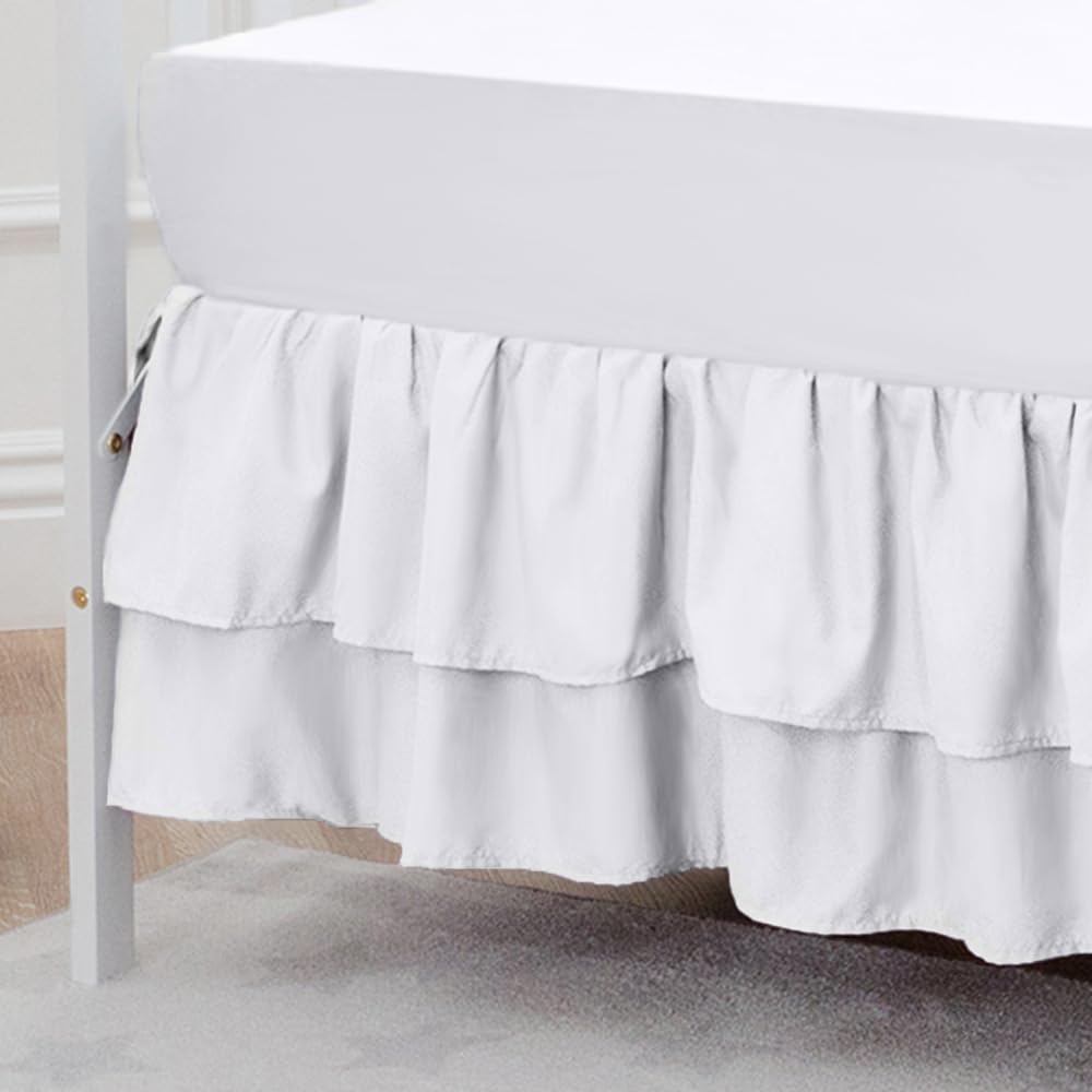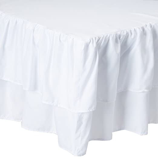 Our elegant double layer ruffle adds a touch of luxury to your standard infant crib bedding. 13.5" skirt with split corners. Machine washable cold; tumble dry low for best results.