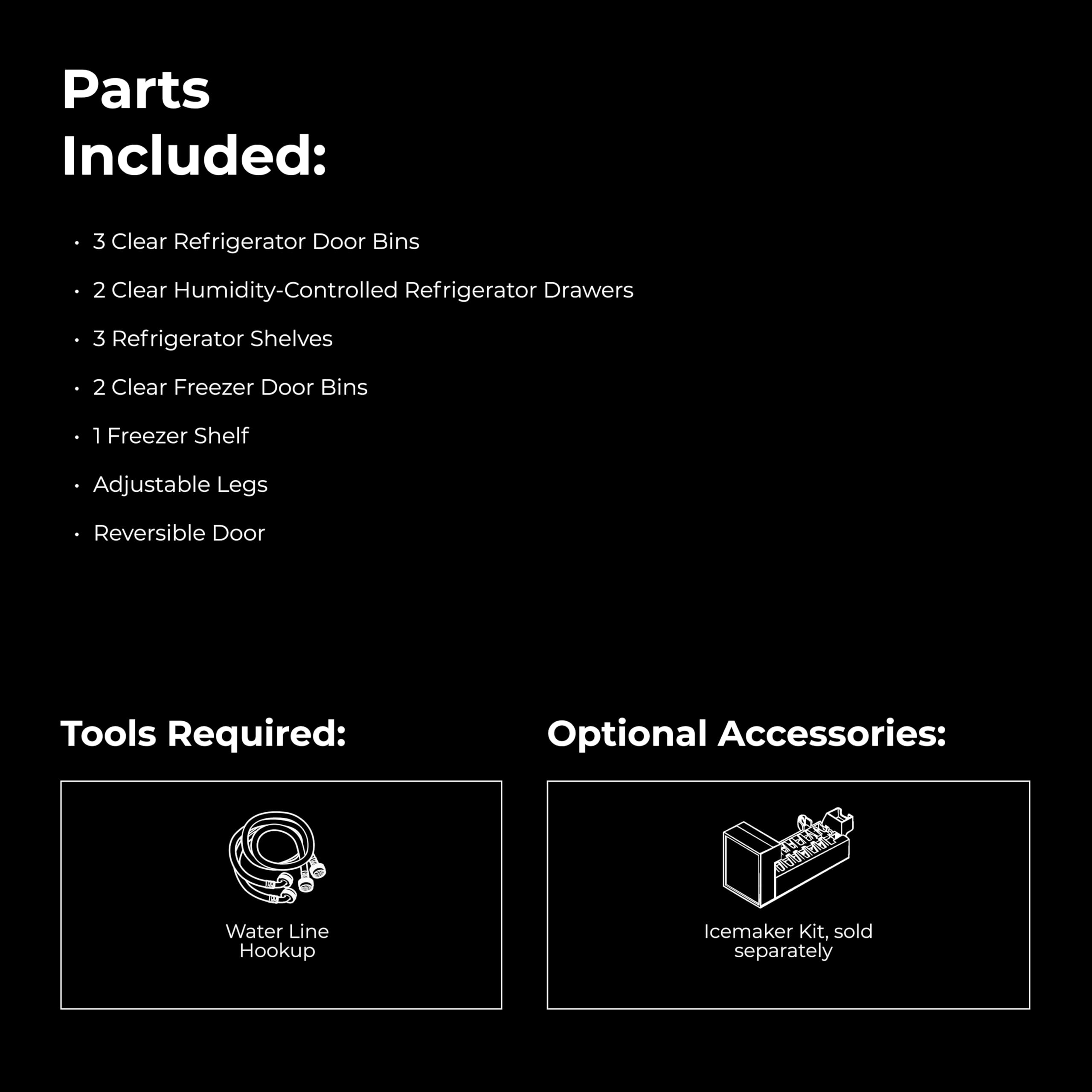 Adjustable Full-Width Glass Shelves: Tempered glass shelves adjust to fit party trays, drink pitchers, or sheet cakes. Customize your refrigerator layout with flexible storage for tall or oversized items