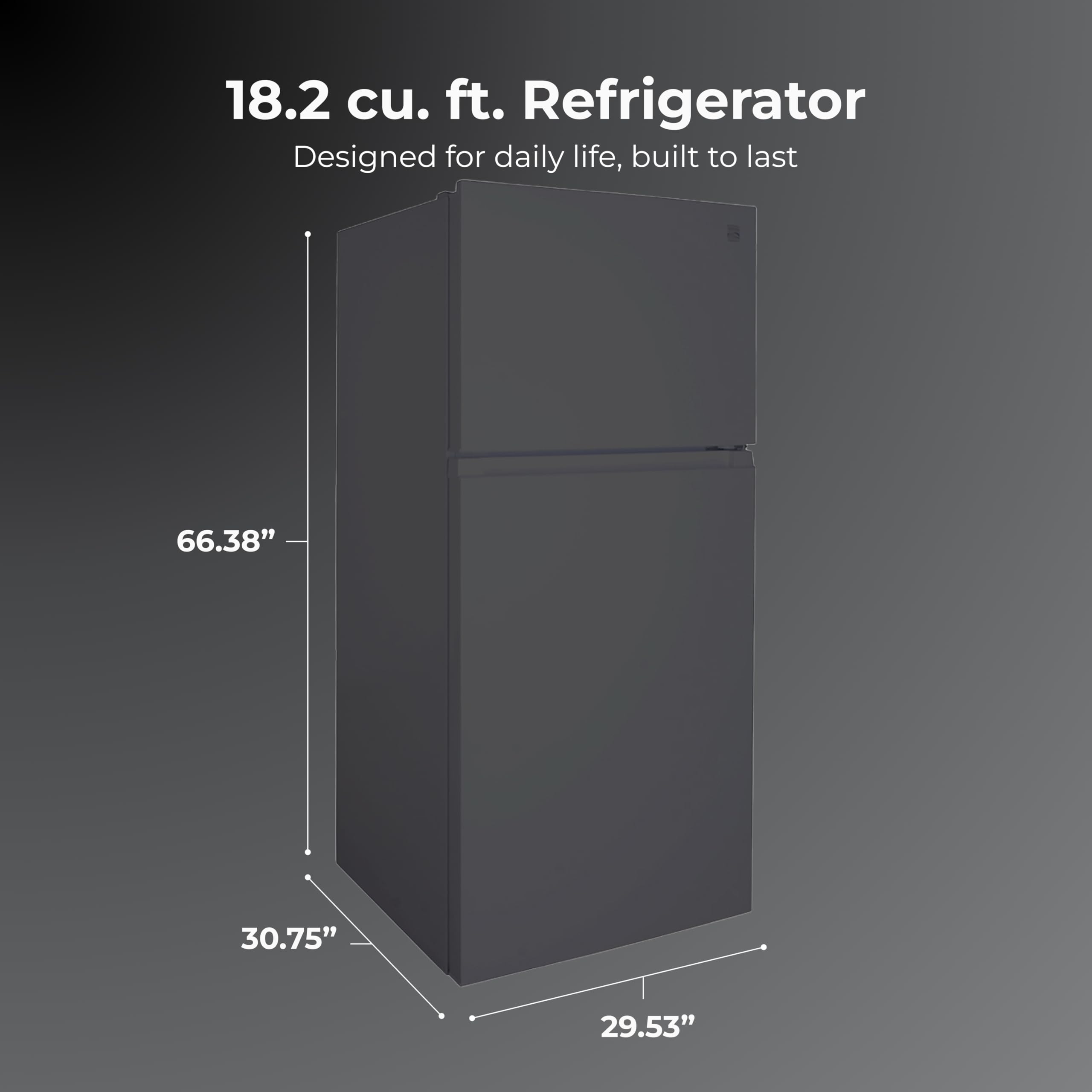 Spacious Yet Compact: This 30-inch, black refrigerator offers 18.2 cu. ft. of standard-depth storage space, giving you plenty of room for groceries without crowding smaller kitchens