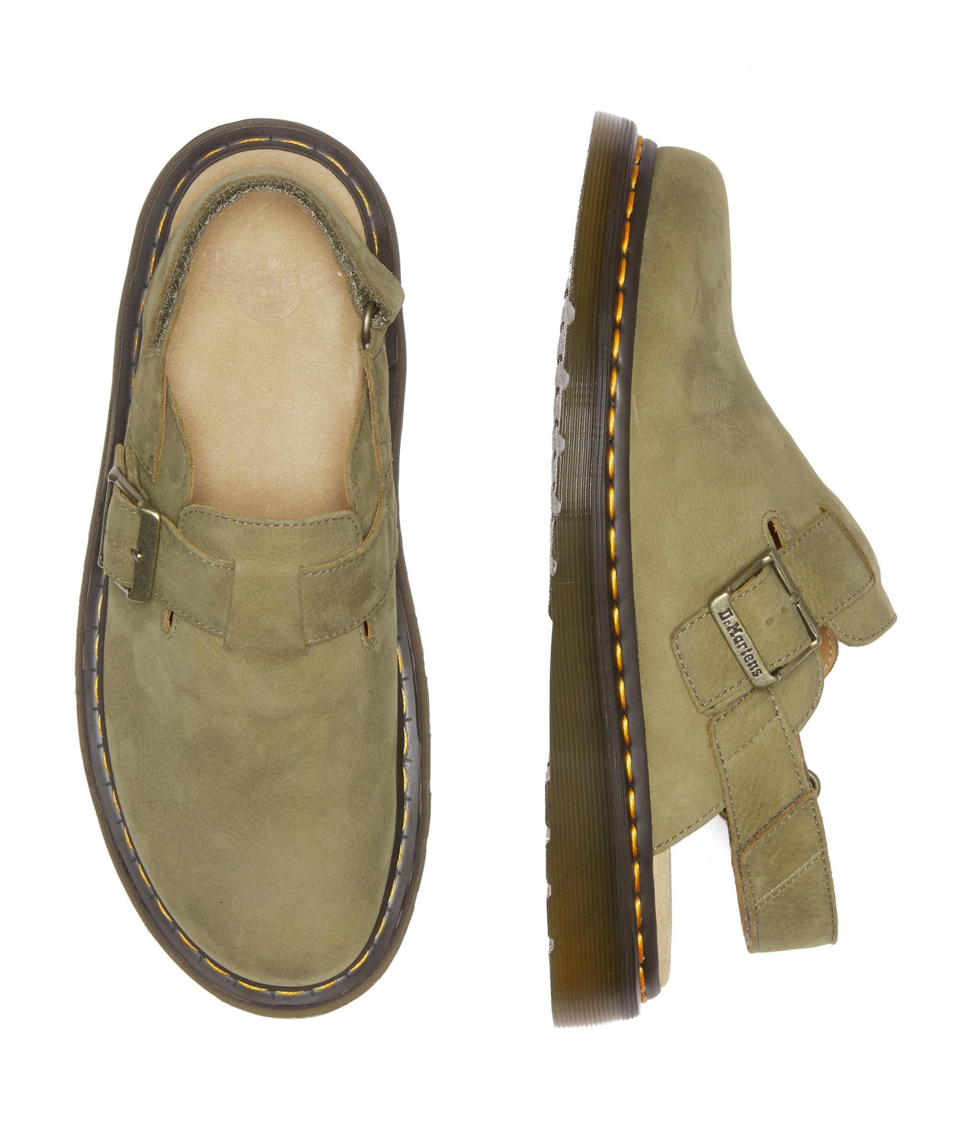 Description Part shoe, part sandal: the Jorge II mule is all about easy wear and everyday versatility. This pair is built with nubuck uppers and set on our classic Shore sandal sole. Ready to go all summer long. Two adjustable straps ensure a comfortable fit. Yellow welt stitching will mark you out as a DM’s wearer.
