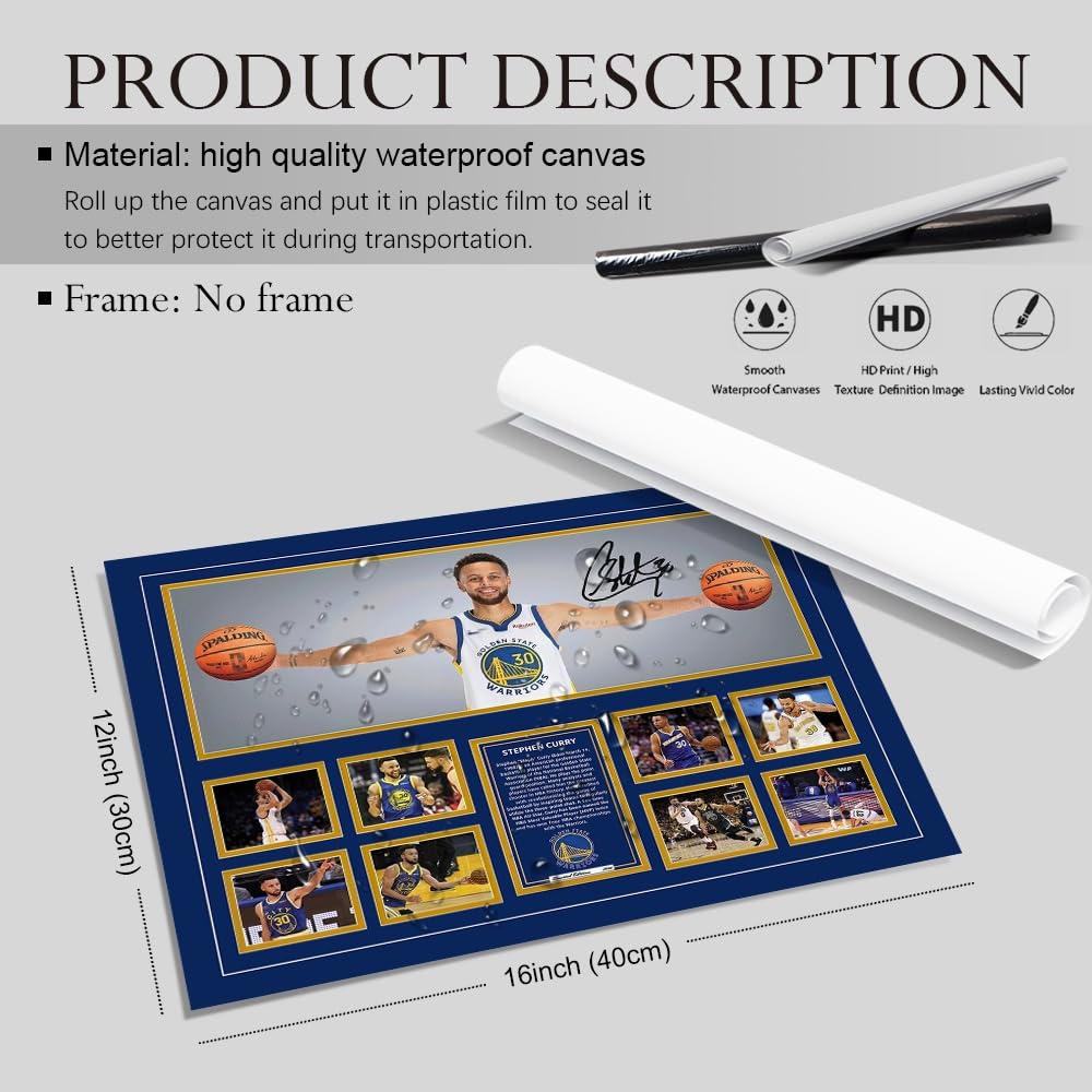 MENKARWHY Stephen Curry Signed Poster For Kids Room Bedroom Wall Decor-Basketball Superstar Posters Canvas Art Print Picture For Teen Boy Fans Birthday D3gifts