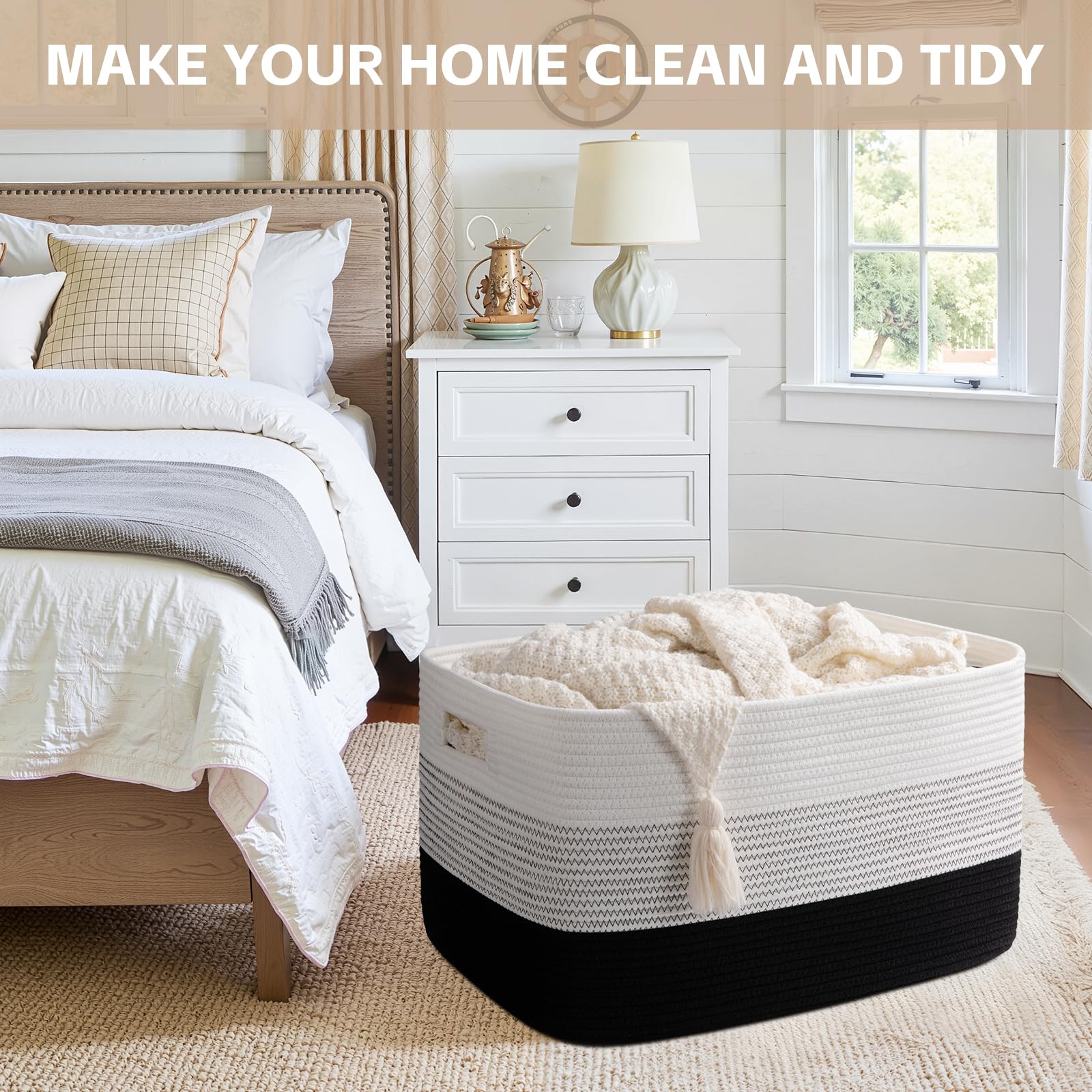 Decorative Blanket Storage for Living Room:This rectangular blanket basket is more stable and easier to restore its sahpe after you receive the package. The 22ββ x 17ββ x 12ββ large storage basket can also used to store blankets, pillows, cushions, toys, clothes and towels
