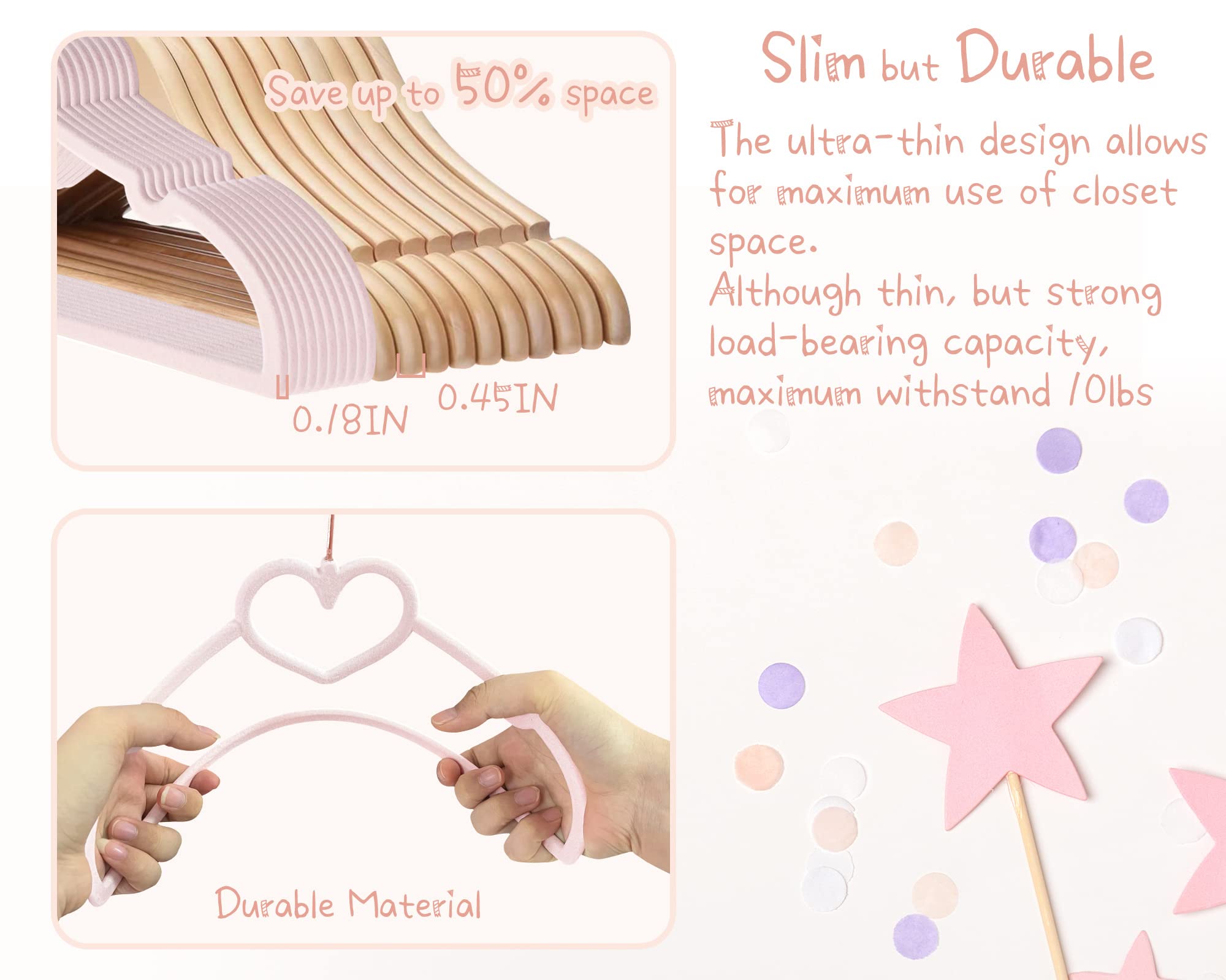 Anti-slip Pink Children Hanger: Notched shoulder design and soft felt increases friction with clothes to prevent slipping, keep your closet tidy