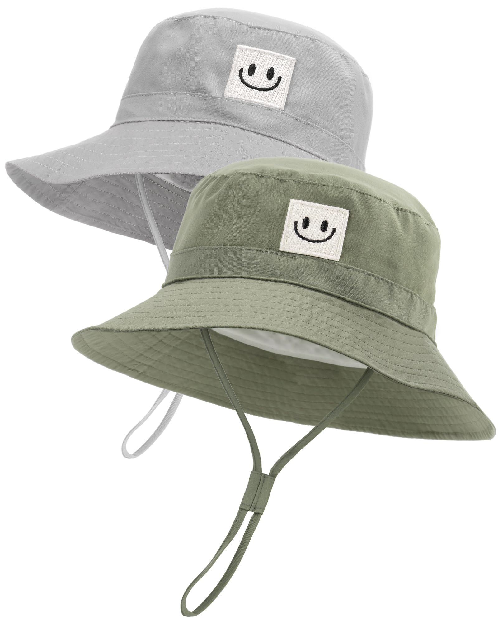 Adjustable size: 0-6M;6-24M;2-5T;this bucket hat grows with your baby ;The elastic adjustment buckle at the back of the toddler bucket hat can easily adjust the head circumference, which is suitable for most babies' head circumference; The chin strap design of the baby summer hat, even your baby can easily adjust to a comfortable position;