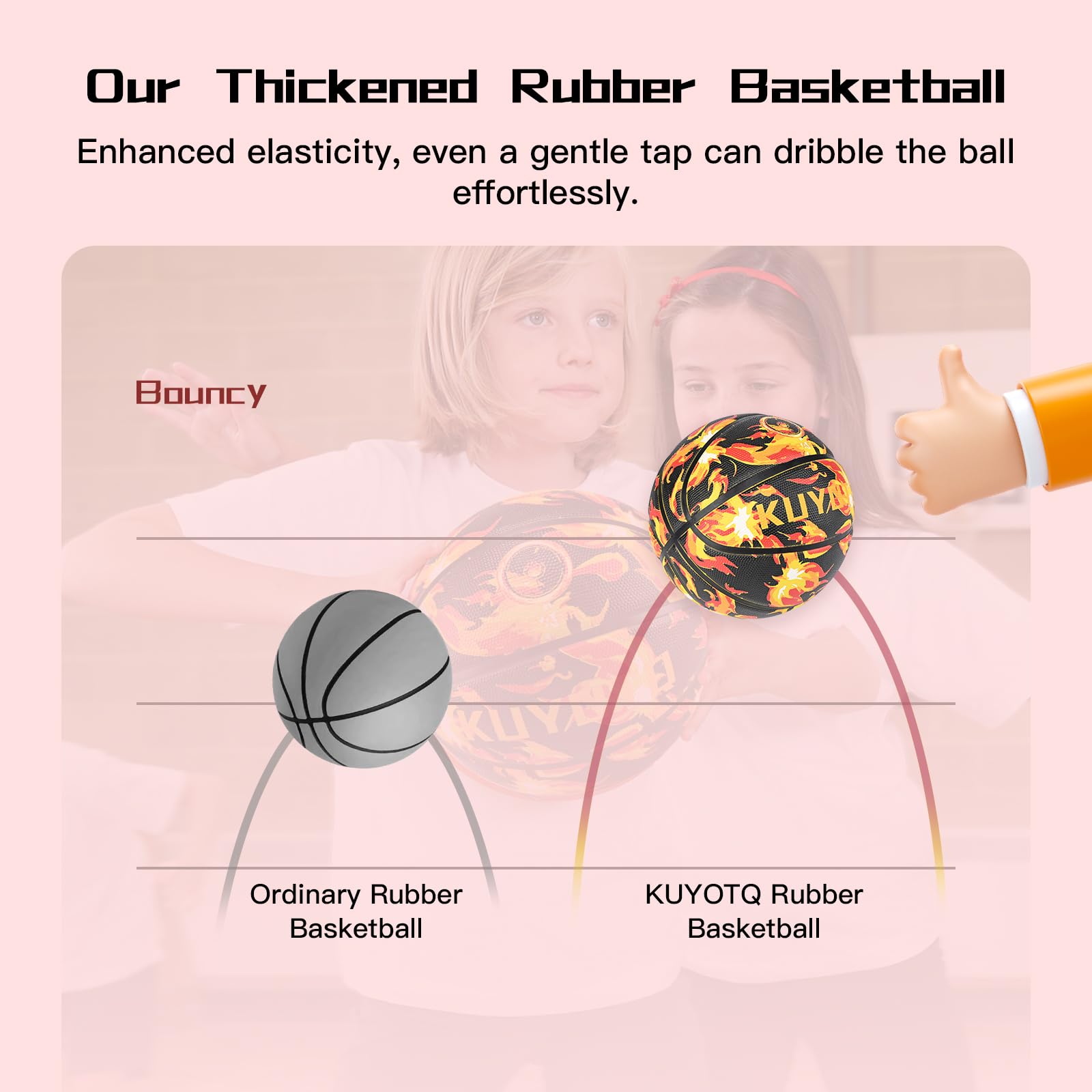 【Thickened Rubber Basketball】Compared with ordinary rubber basketballs, our thickened rubber basketball’s elasticity is strengthened, also more stabilized for shooting and increased feel of the ball. Additionally, the wear-resistant construction ensuring a firm grip even during intense gameplay.