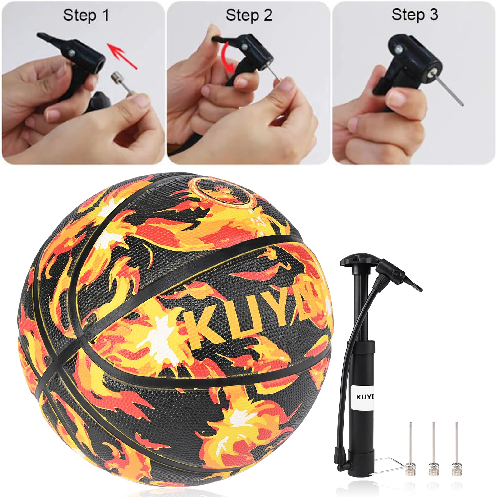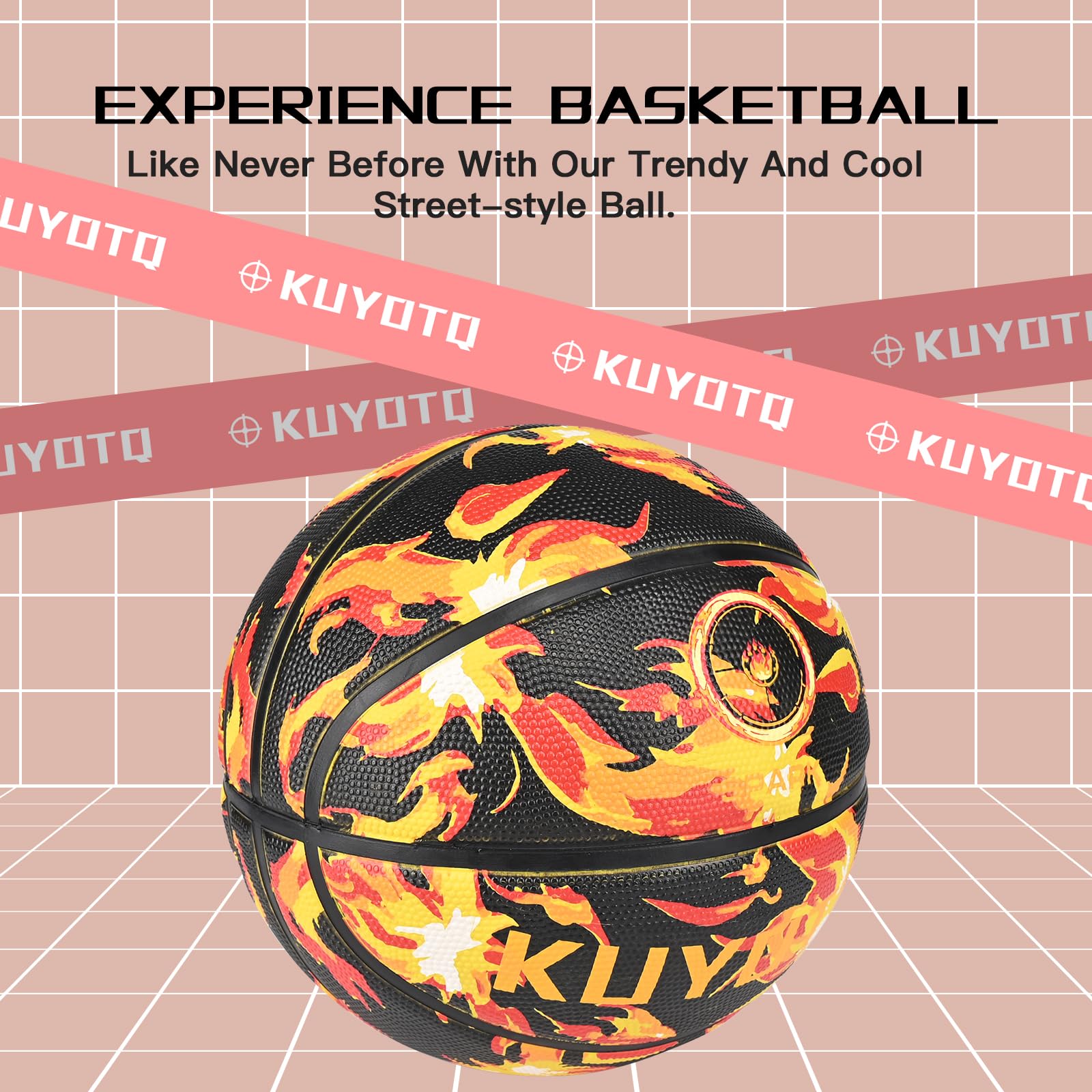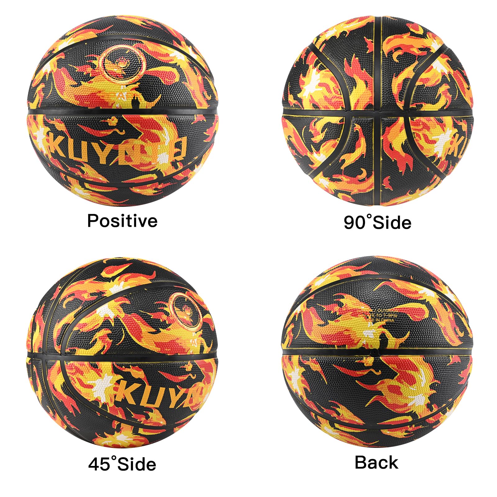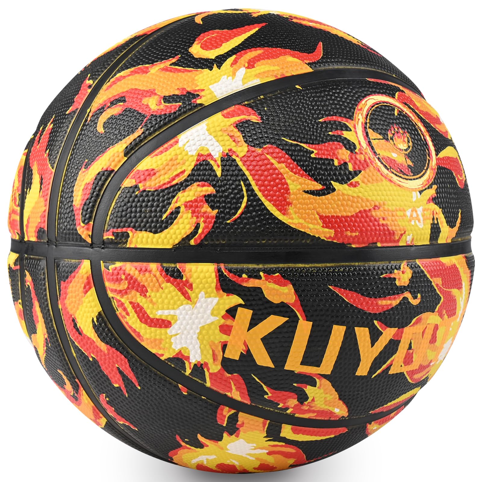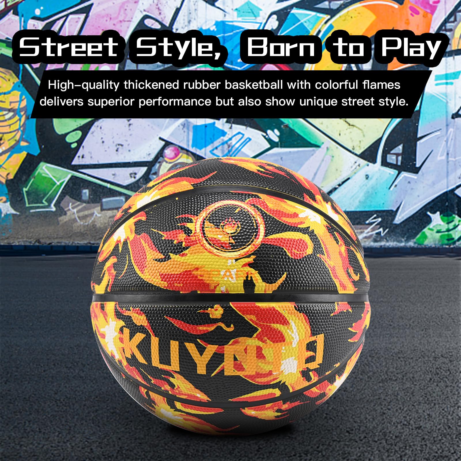 【Indoor and Outdoor Versatility】 This street basketball’s cool street ball style accentuated by striking red flame patterns, adds flair to street games, making it is perfect for play outdoors; also it’s suitable for various sites, you can play it on the rubber floor, wood floor also cement floor.