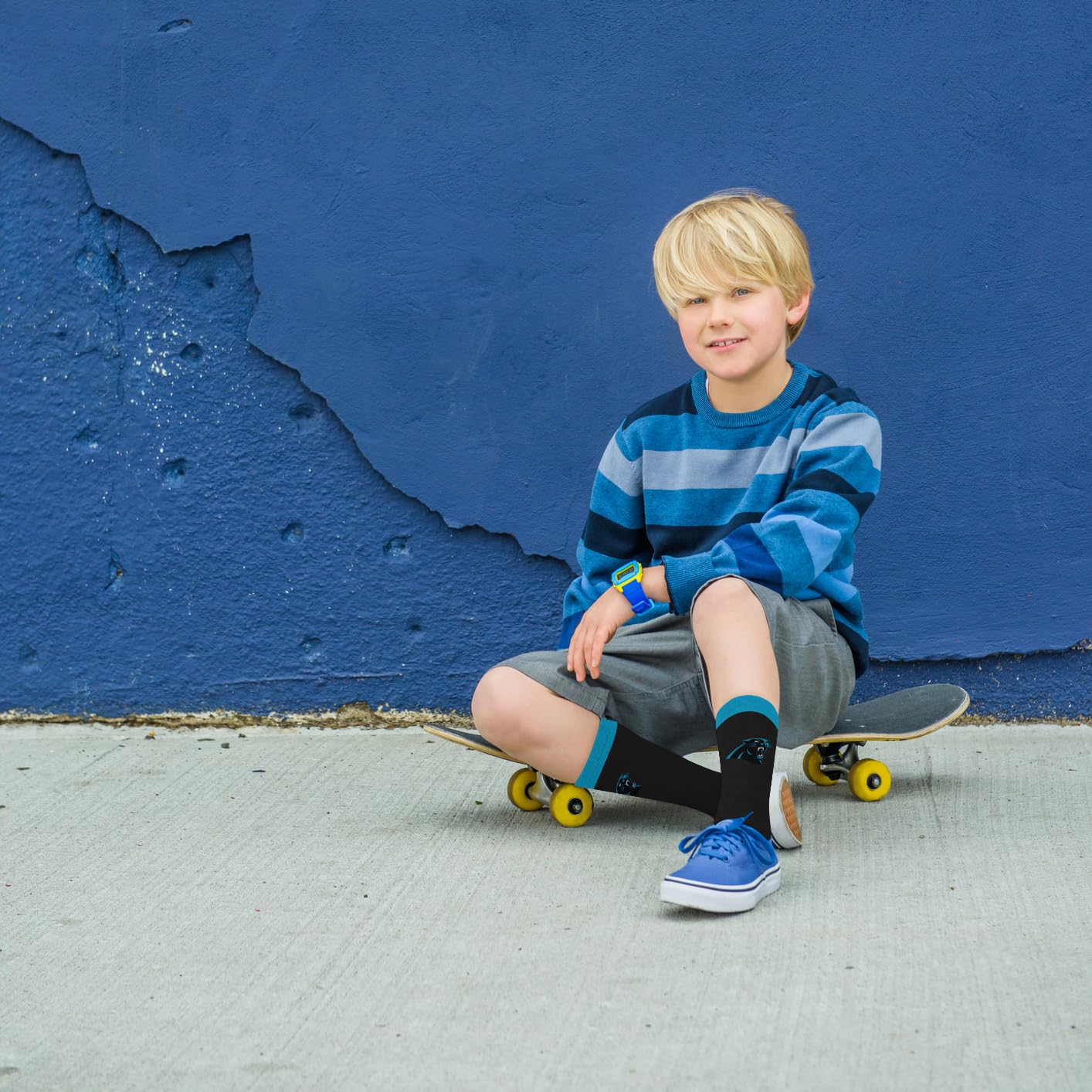 Comfortably Fits the Carolina Panthers Fan Shoe size Youth 13, 1-5. These socks are a MUST HAVE on gameday for any Panthers fan.