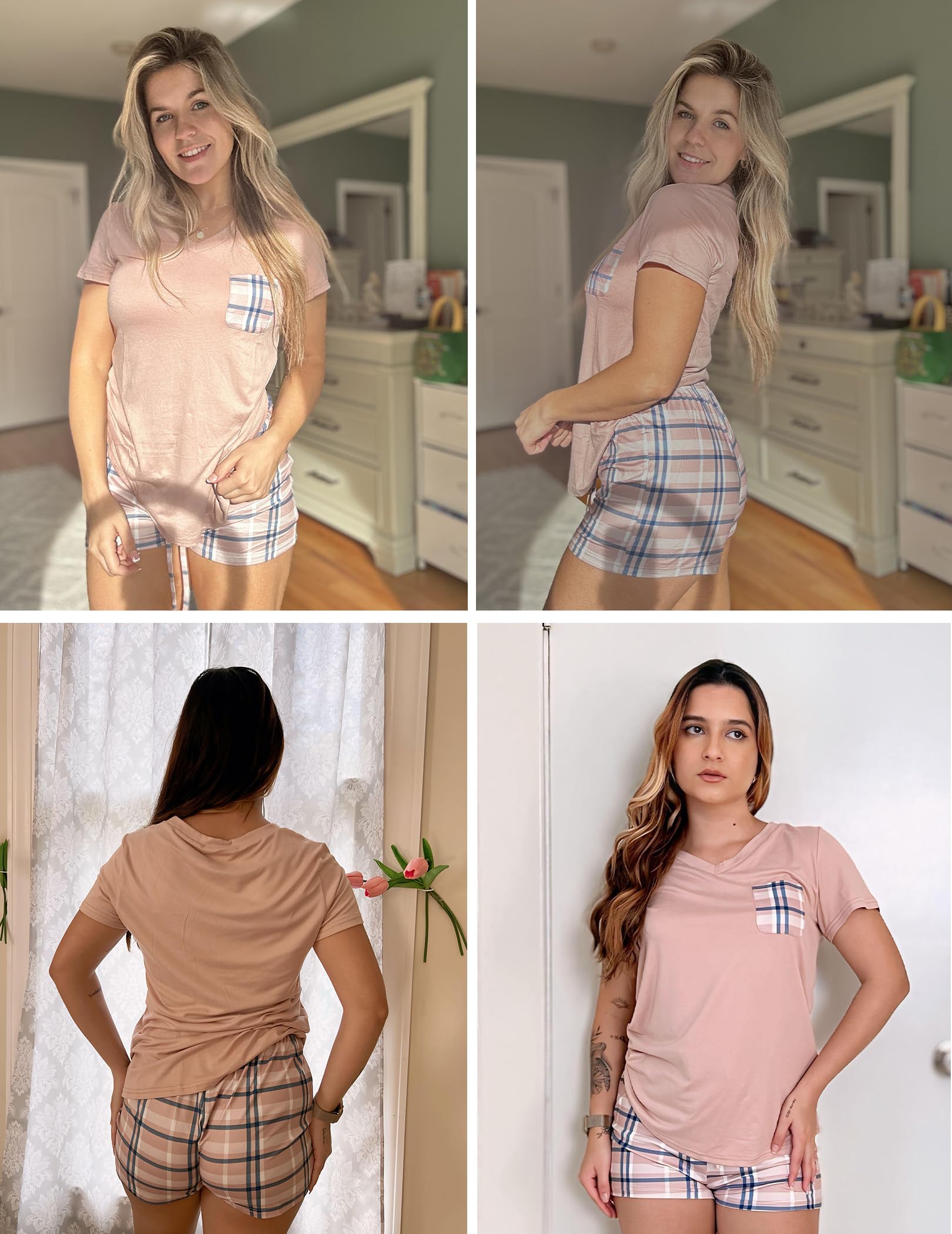 MATCH: Pajama tops can easily match with skirt, leggings, skinny pants, jeans or also pajama. Pjs shorts can be worn with all t-shirts for a casual look. 2 pieces sets match with sneakers, sports shoes perfectly.