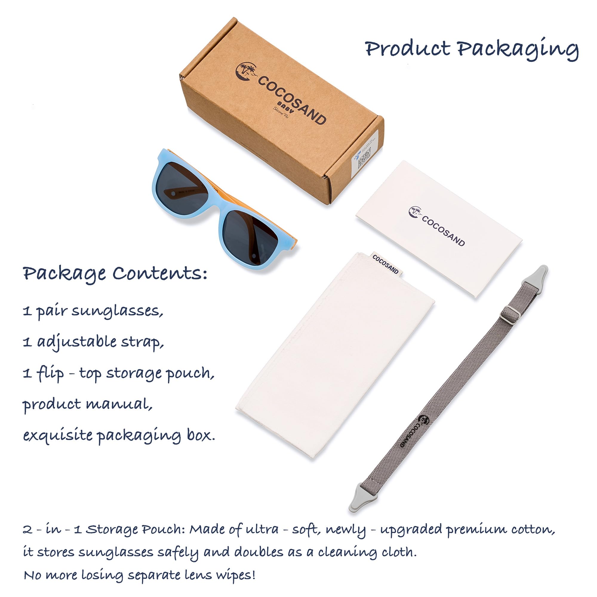 【Stylish and Practical Package】:COCOSAND baby sunglasses come with a flip - top glasses pouch and a product manual. The packaging is made of kraft paper, simple yet elegant
