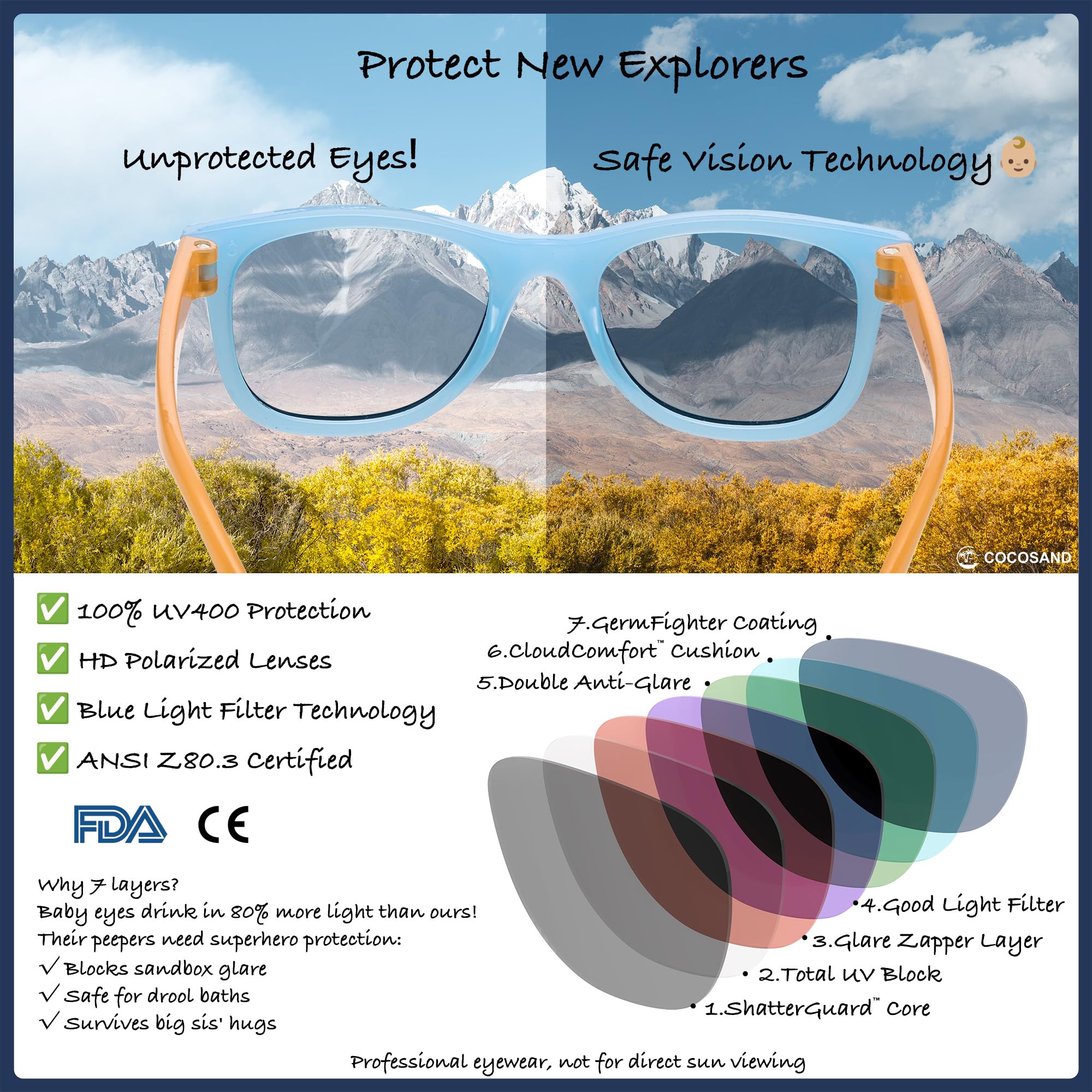 【Safety First for Your Baby】:COCOSAND baby sunglasses are a game - changer for 0 - 24 month olds. The polarized lenses protect eyes, and the TPE frame is as safe as can be. It's gentle on baby boys' and baby girls' skin, just like a soft hug. Whether they're infants or toddlers, it's a worry - free choice