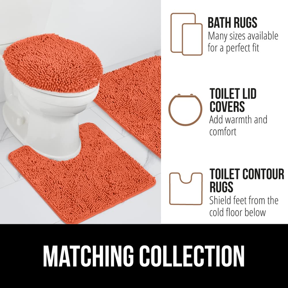 MATCHING CHENILLE COLLECTION: coordinate your new chenille bath rug with our matching toilet lid covers and contour rugs; rugs add extra warmth and cozy comfort while helping to protect toilet lids and floors