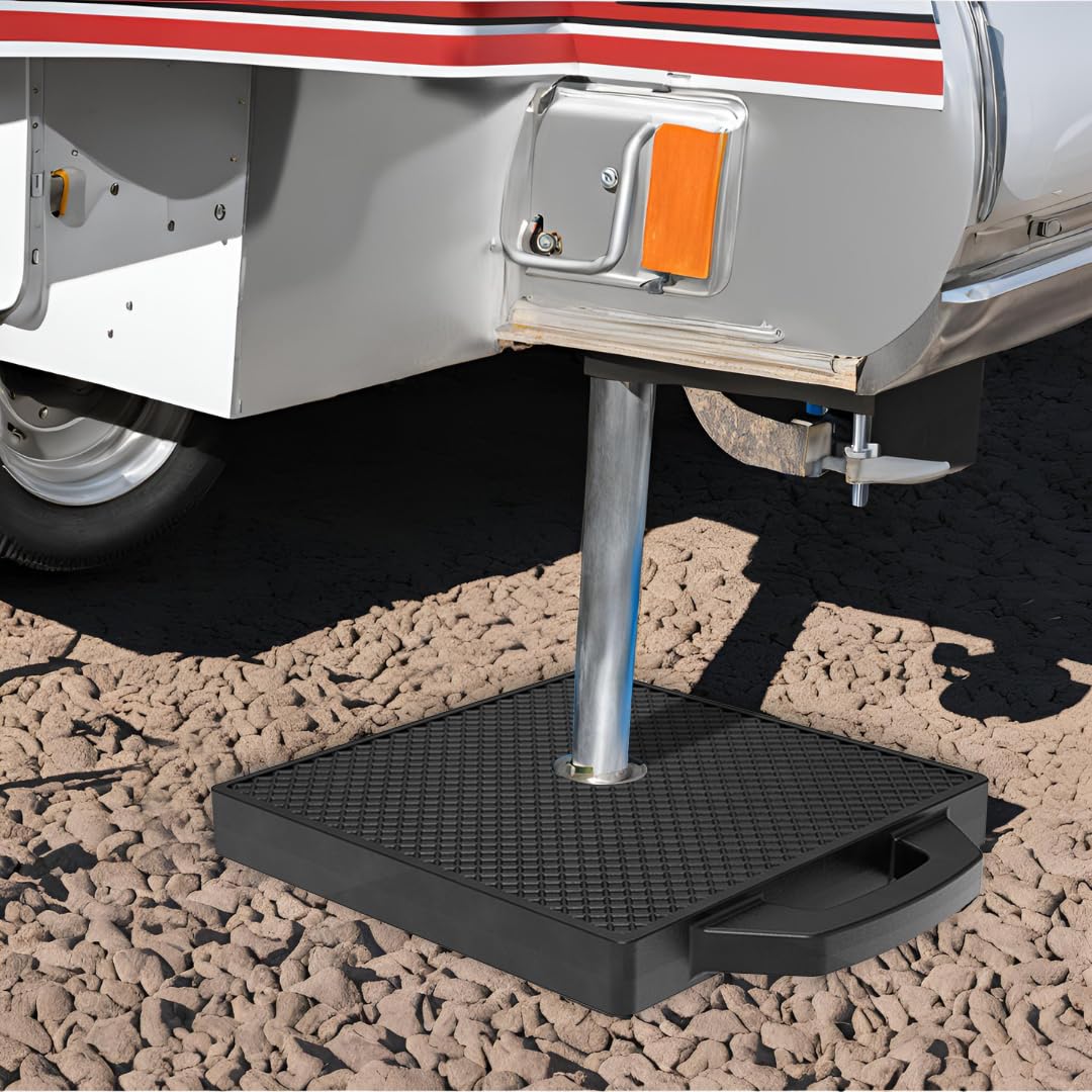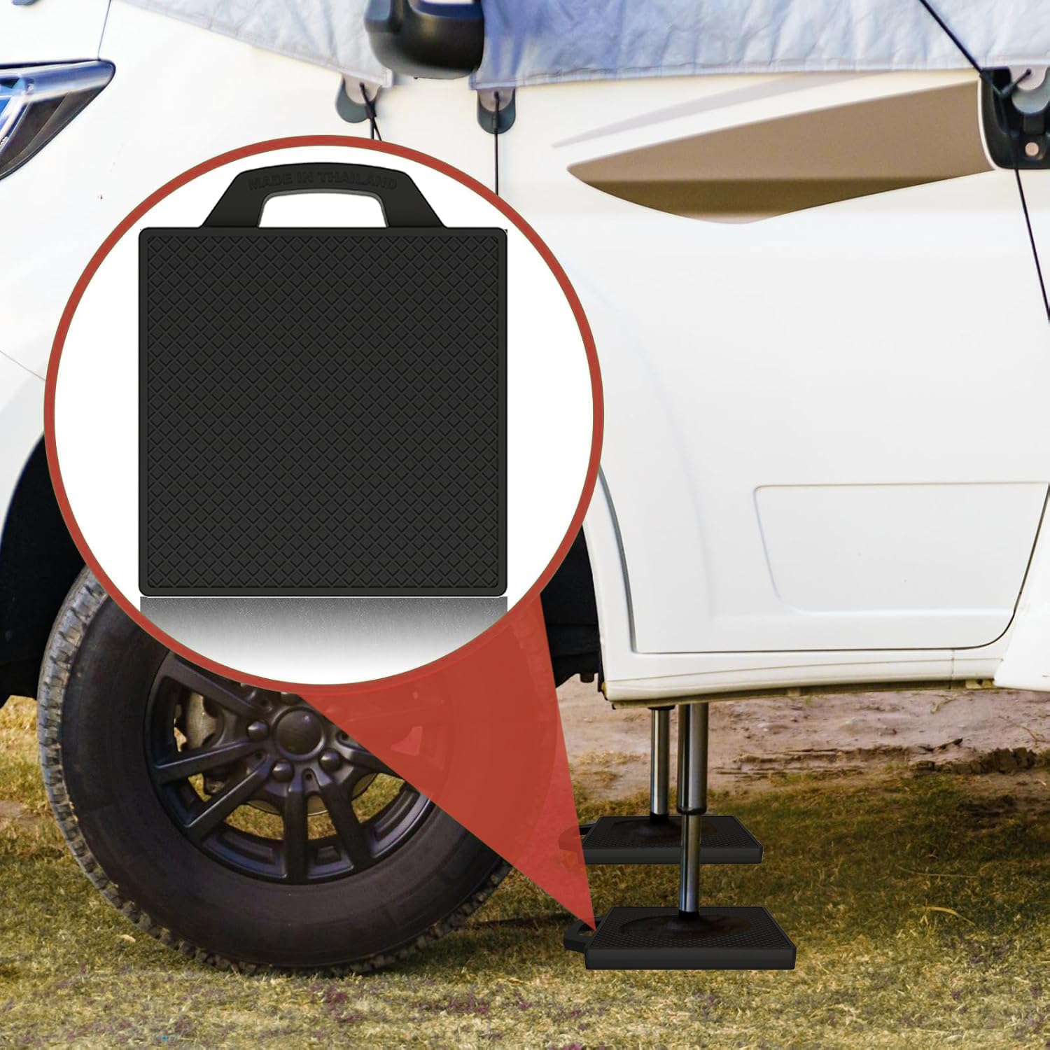 Non-Slip Stability: Flexible rubber outrigger pad absorb shocks and vibrations while providing a non-slip base. Their large surface area ensures stability, keeping your RV level and secure during use