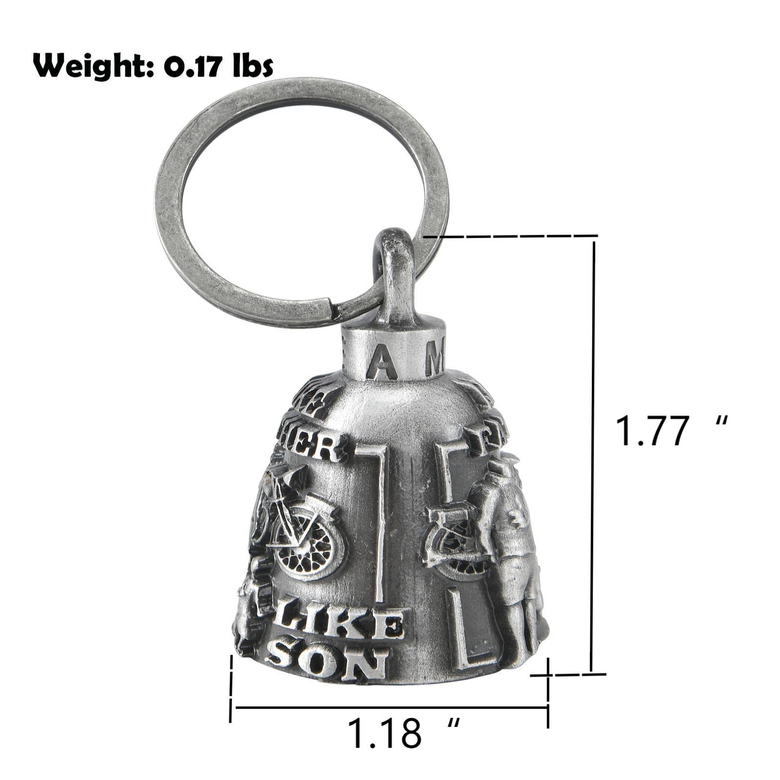 Large & Heavy:Each luck bell comes with 1 hanger+1 black gift bag+1 Legend of the Dream Apparel Bell story card,Measures: 2.75" tall ring include, 1.18"bottom wide. and weight 0.17lbs,heavy motorcycle bell keeps more sturdy while riding.