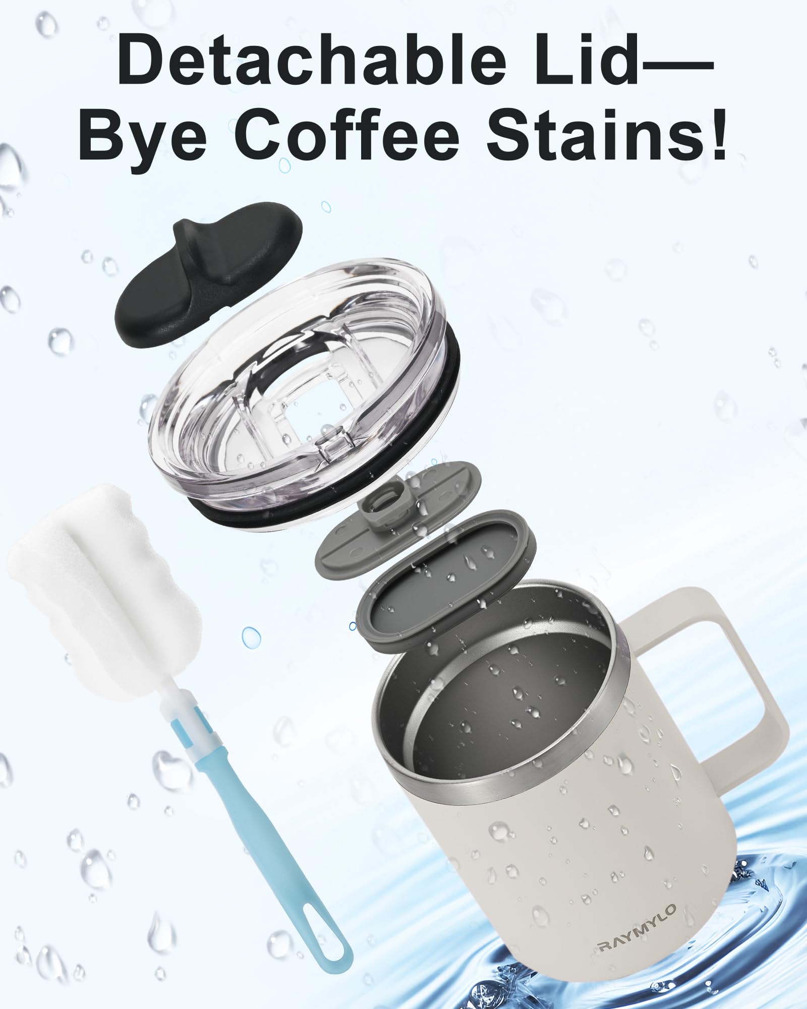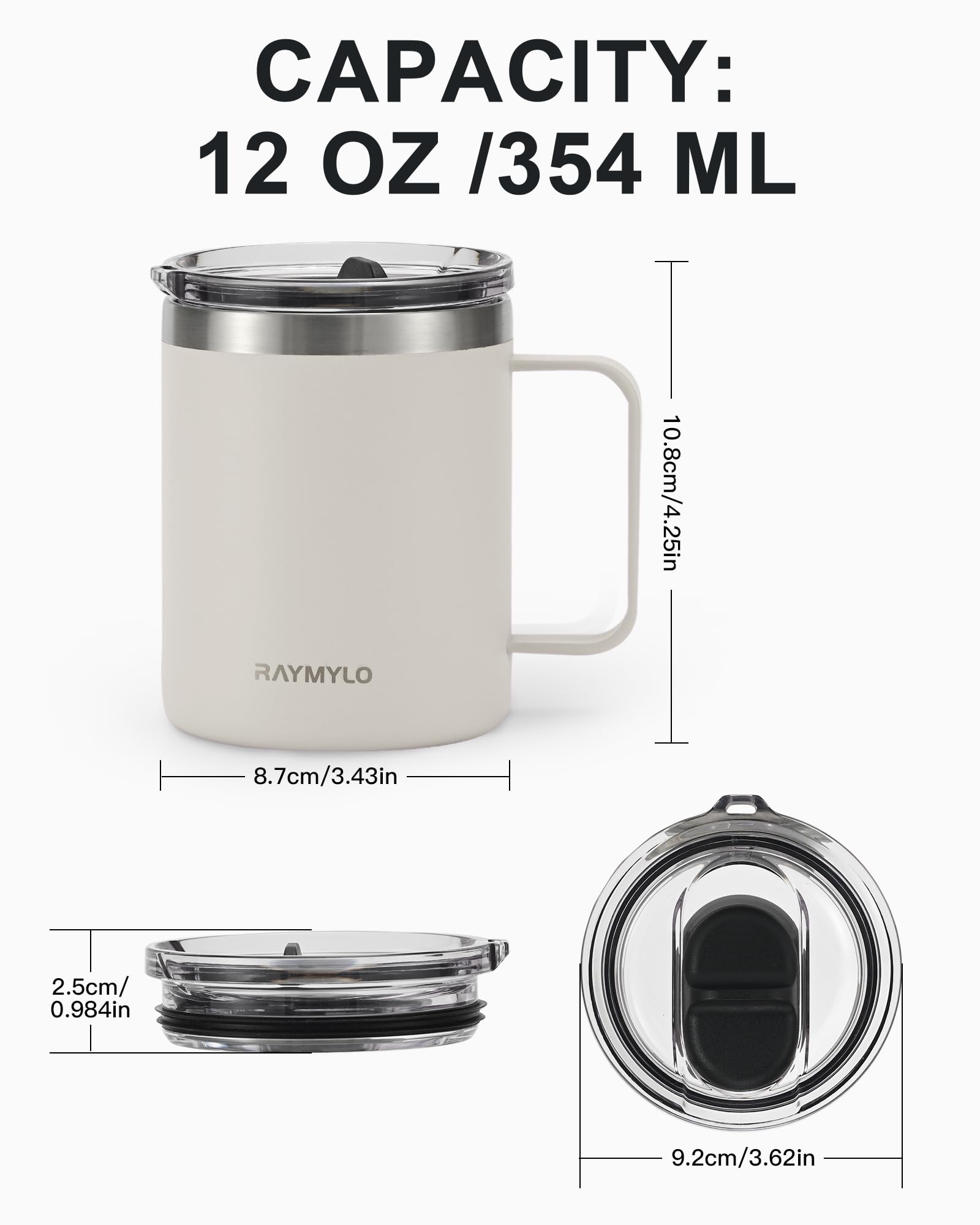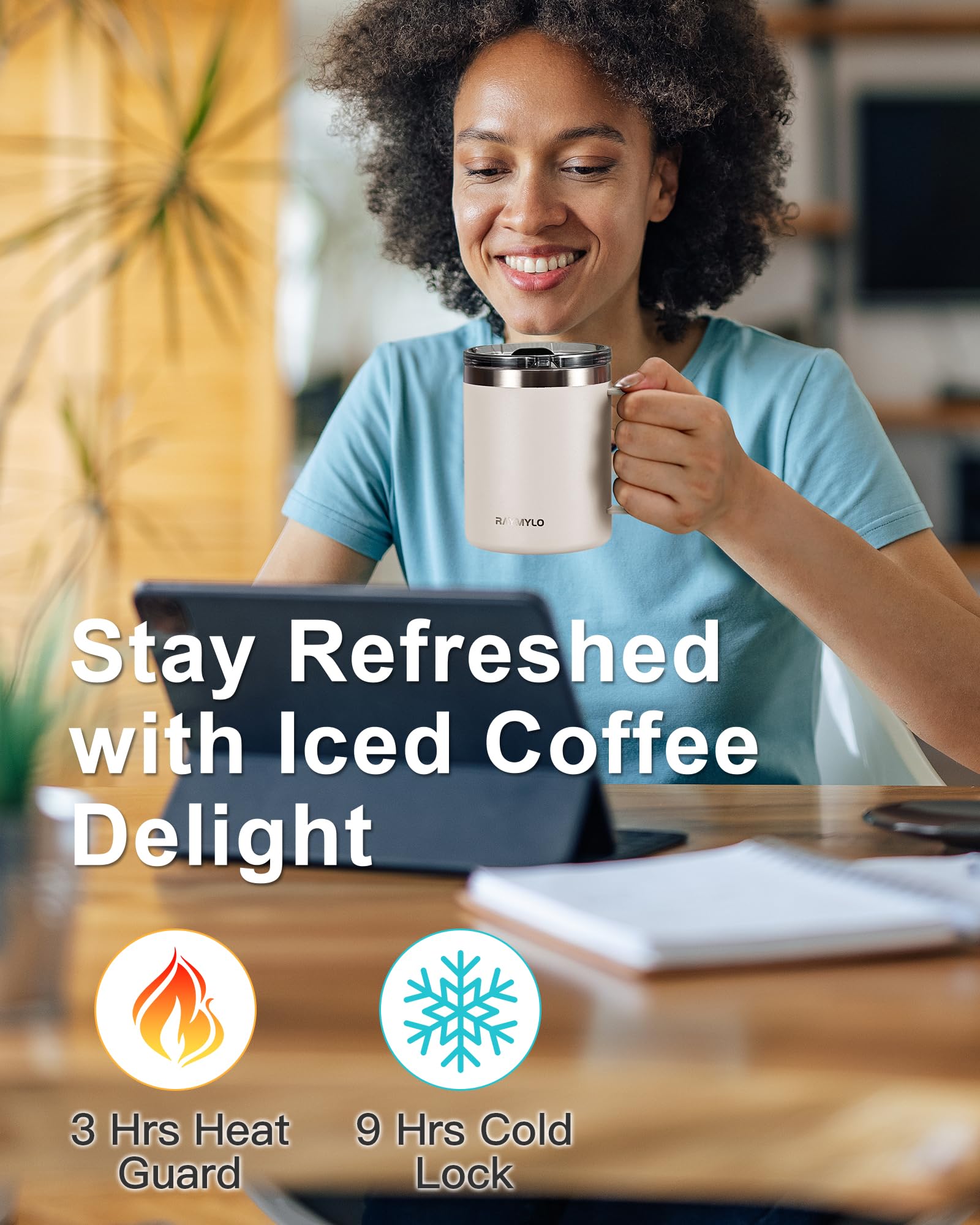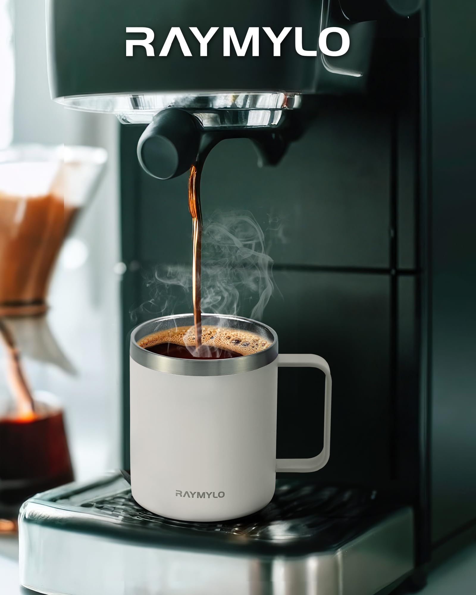 Double-Wall Vacuum Insulation: RAYMYLO Coffee Mug keep your drinks icy-cold for 9 hours and cozy hot for 3 hours with advanced Double-wall design! Perfect for hot summer days or long work hours, this insulated coffee mug with handle ensures your drink stays refreshingly cold or deliciously hot when you need it most.