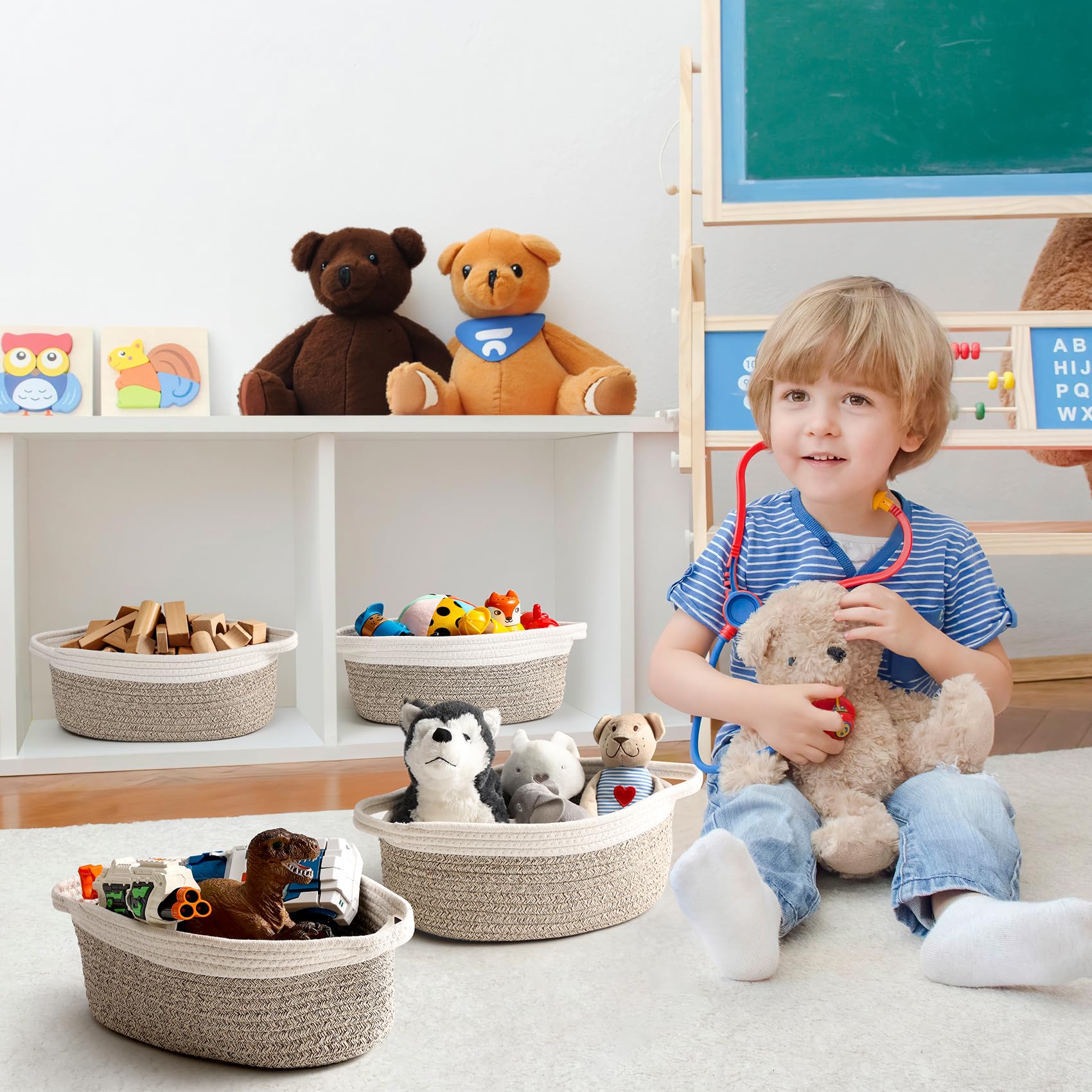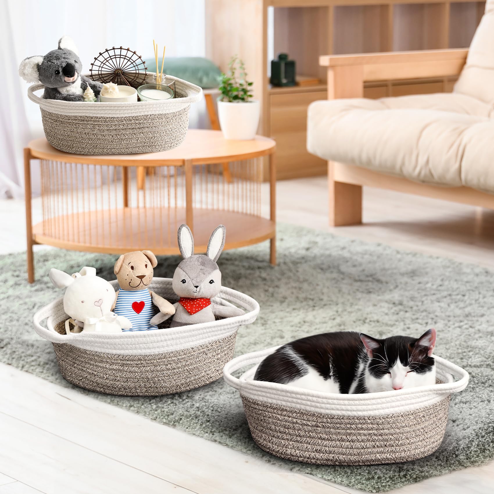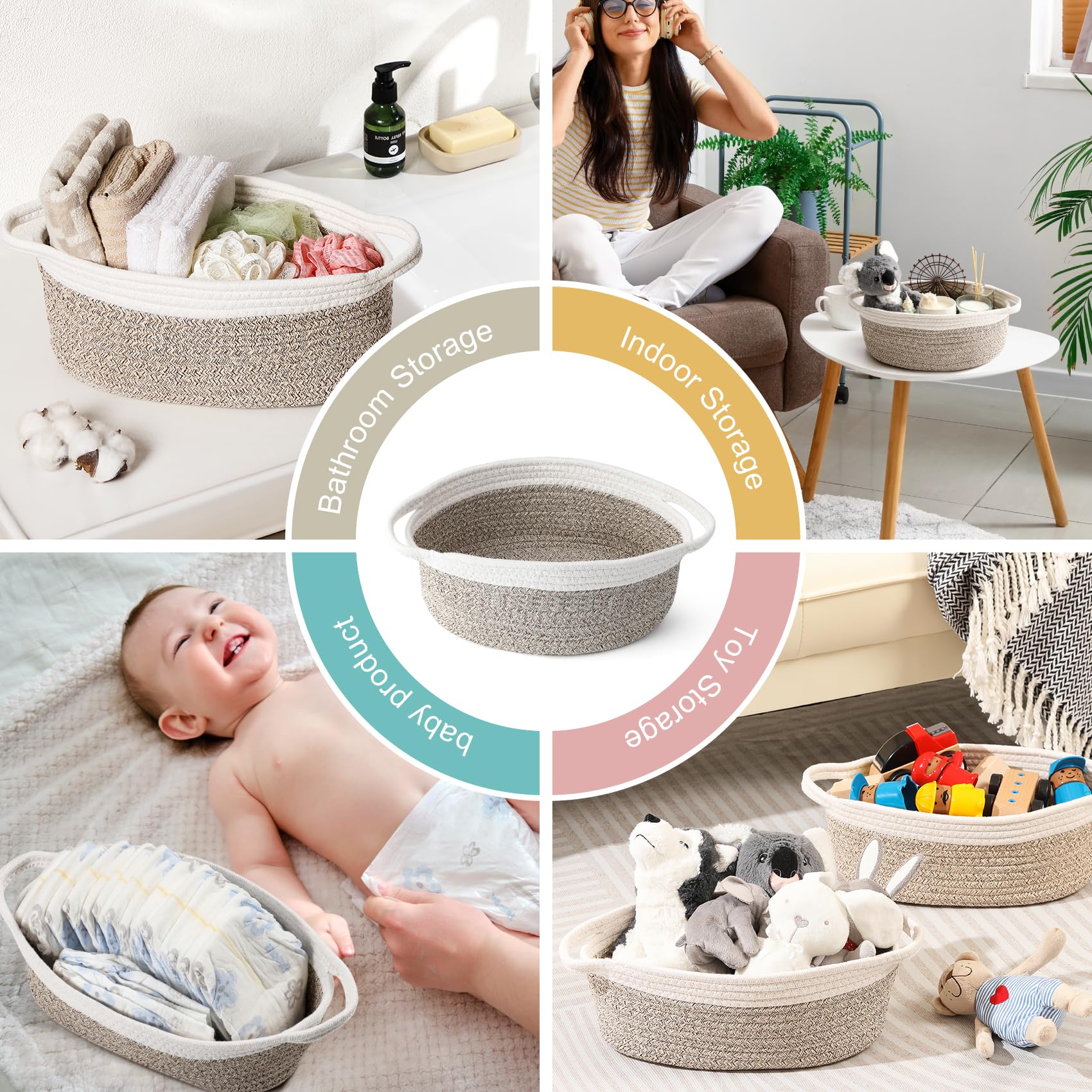 Organic Cotton Woven: Our small woven basket is made of 100% organic cotton, 2 Pack brown all 12"x 8"x 5", this makes the material incredibly soft and gentle. The natural cotton rope used in weaving is free of harsh chemicals, making it a reassuring choice for families with young ones.