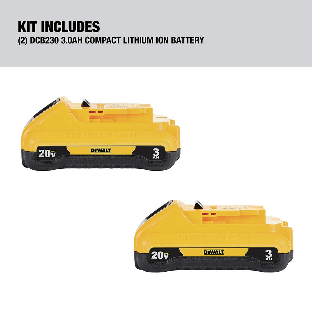 This 20V MAX* 3.0 Ah Battery 2-Pack gives you a pair of our high-capacity compact 20V MAX* batteries. They provide 3.0 Ah capacity with reduced weight, giving you optimum comfort for extended power tool use. DEWALT 20V MAX* battery includes a 3-LED Fuel Gauge system to instantly check battery state of charge. This battery is compatible with all DEWALT 20V MAX* power tools and includes 3-Year Limited Warranty.