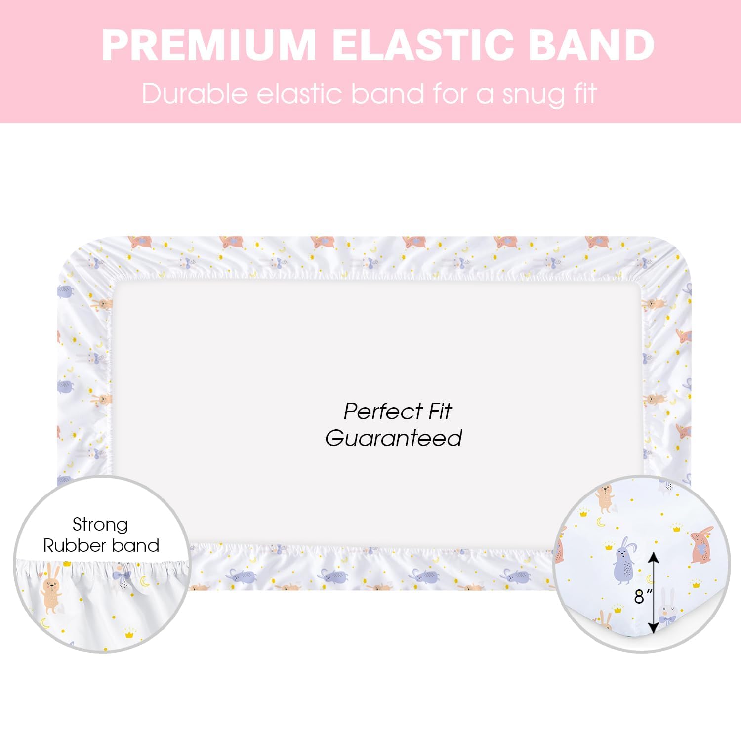 Premium Fabric:The baby crib sheets are super soft, breathable and comfortable for any season!Made from 100% microfiber,these crib mattress sheet Tested for harmful substances according to Standard 100 by OEKO-TEX will provide a soft comfy place for child to sleep and play.