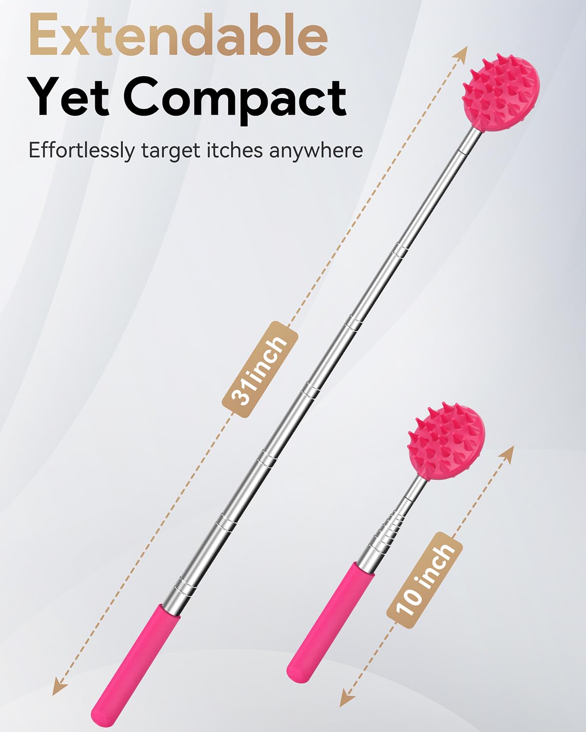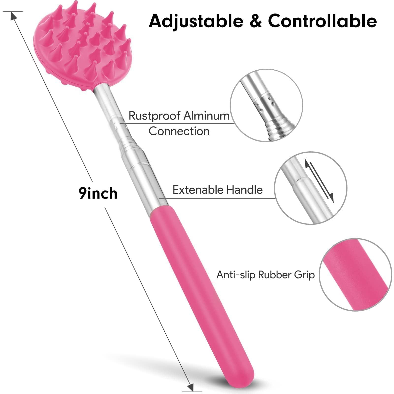 Sturdy & Lengthened Handle: 6 sections thicken stainless-steel handle specially designed enables it to reach every inch of your back and soft rubber at the handle bottom allows you to get a good and comfortable grip