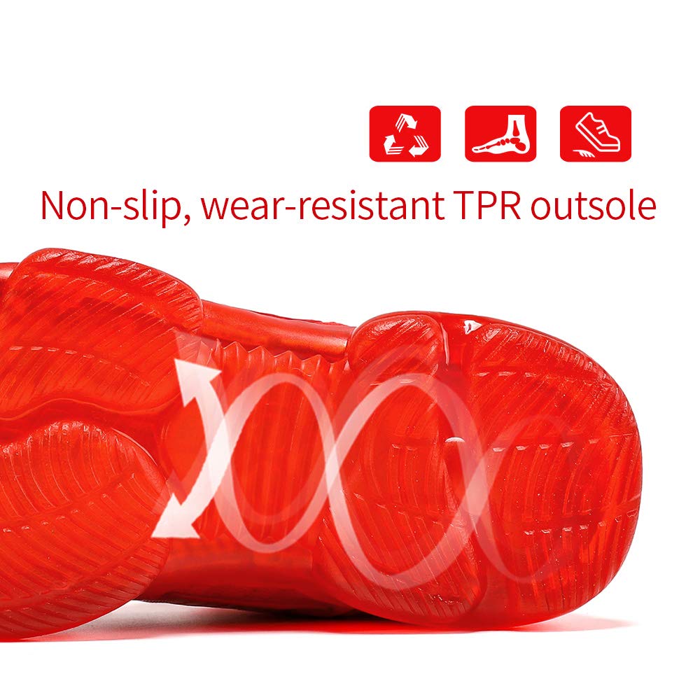 The boys basketball shoes sneakers has the outsole made of excellent phylon +air cushion+ TPR bottom, it maks this shoes light weight, cushion, slip resistan and wear resistance.