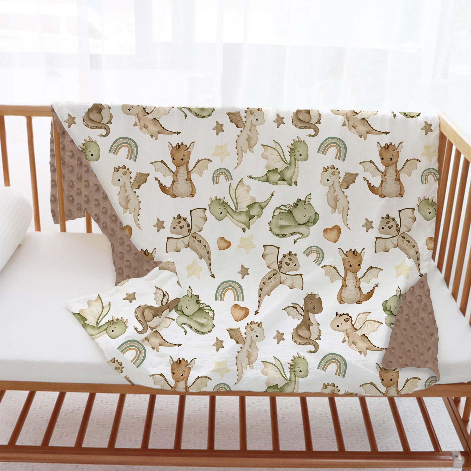 Unique design: Each baby blanket features a double-sided design, with a cute dragon pattern on one side that can arouse children's curiosity, and raised plush three-dimensional dots on the back that can soothe babies at night.