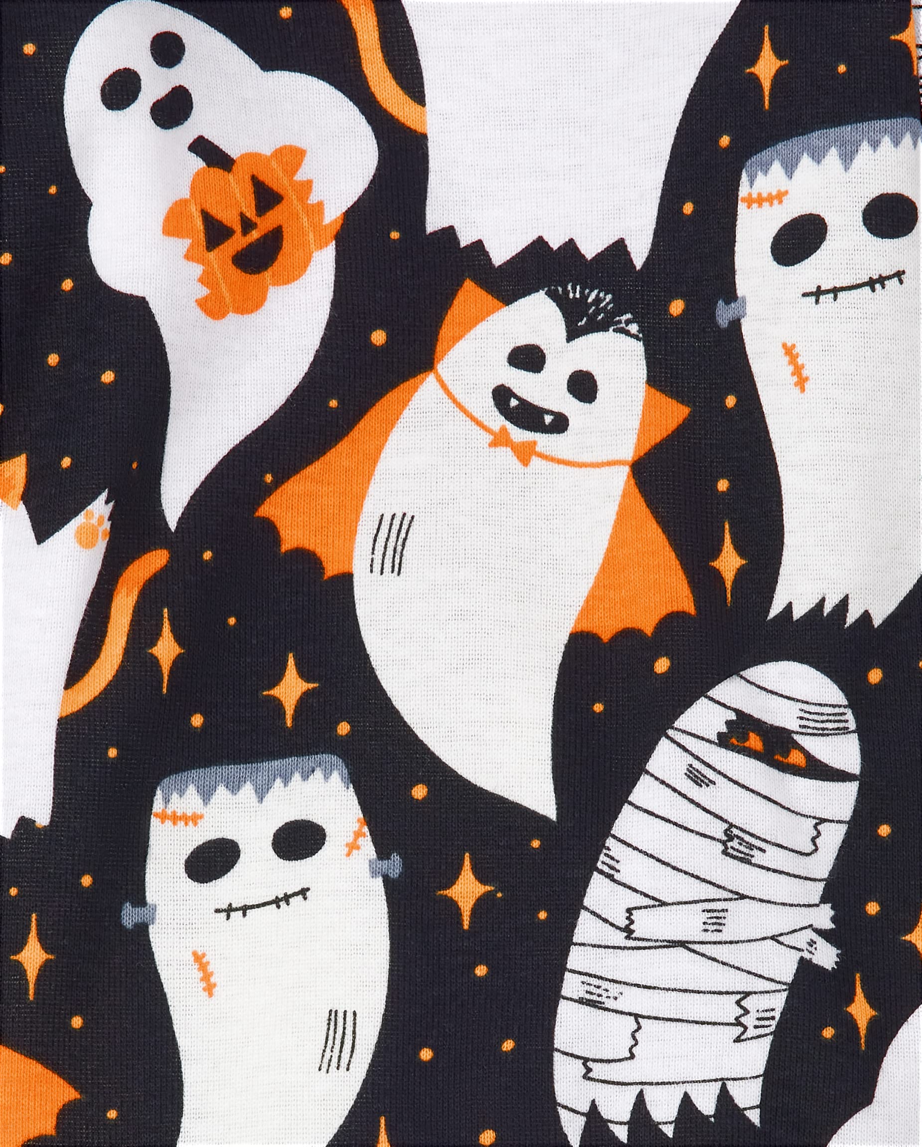 PAJAMA TOP — Features long striped sleeves, rib-knit crew neck and sleeve cuffs and allover ghost print glows in the dark. For best glow effect, expose to light before wearing