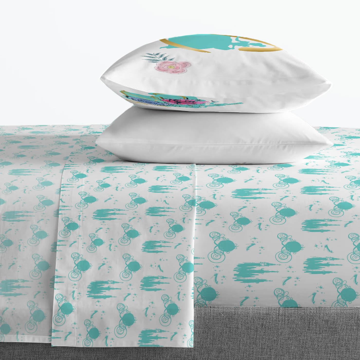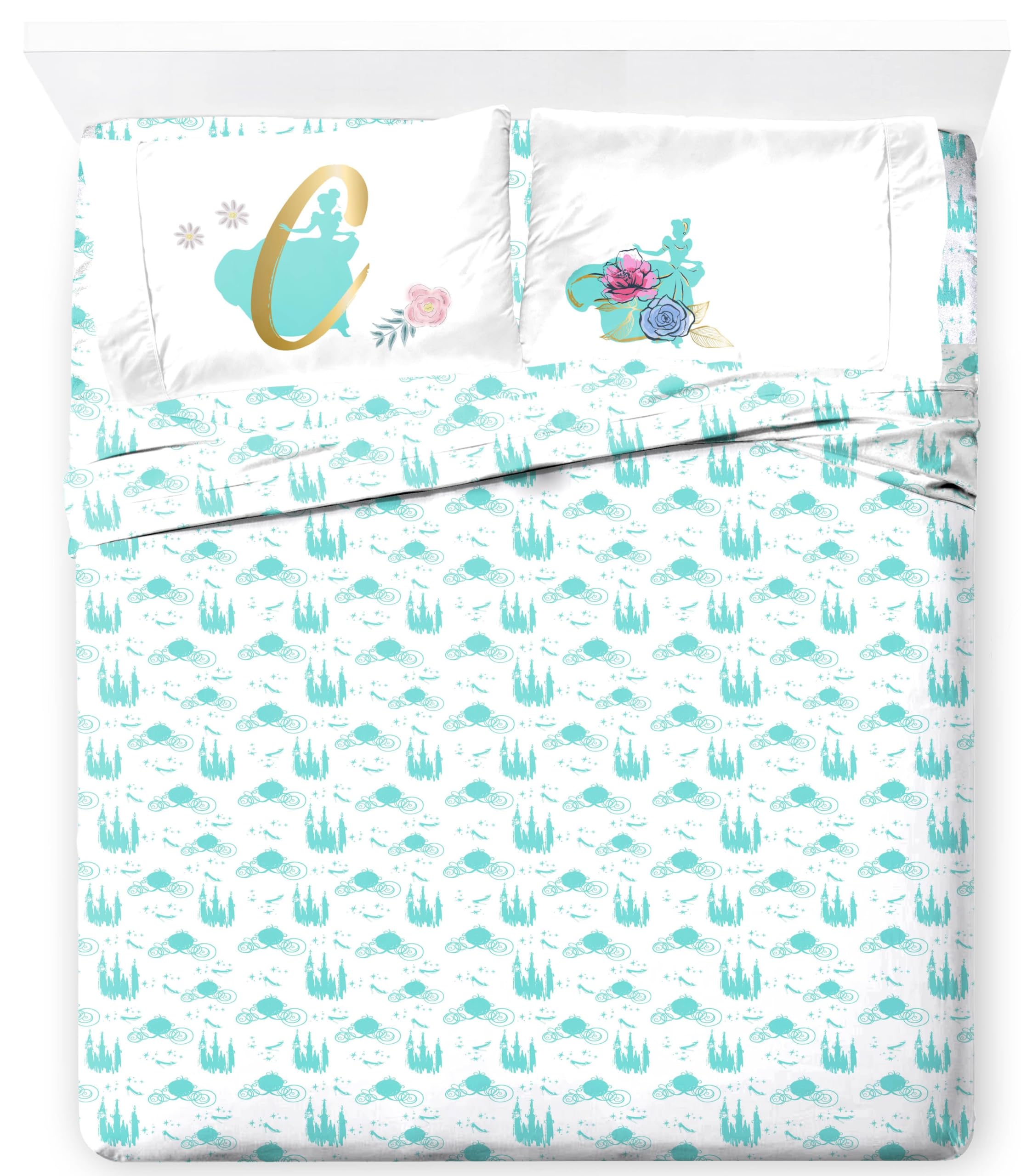 Bring magic to your child’s bedtime with the Jay Franco Disney Princess Cinderella 4-Piece Full Sheet Set. Featuring colorful designs with a beautifully illustrated design of Cinderella surrounded by delicate florals and her golden castle, this set includes 1 full fitted sheet (54” x 75”), 1 flat sheet (81” x 96”), and 2 standard pillowcase (20” x 30”). The deep-pocket fitted sheet fits mattresses up to 10” deep. Crafted from 100% brushed microfiber, the fabric is ultra-soft, breathable, and lightweight—perfect for year-round comfort. Parents will appreciate the machine washable, durable design that keeps colors bright and fresh wash after wash. Ideal for kids’ bedrooms, guest rooms, dorms, or sleepovers, this officially licensed bedding set makes a magical gift for birthdays, holidays, or back-to-school.