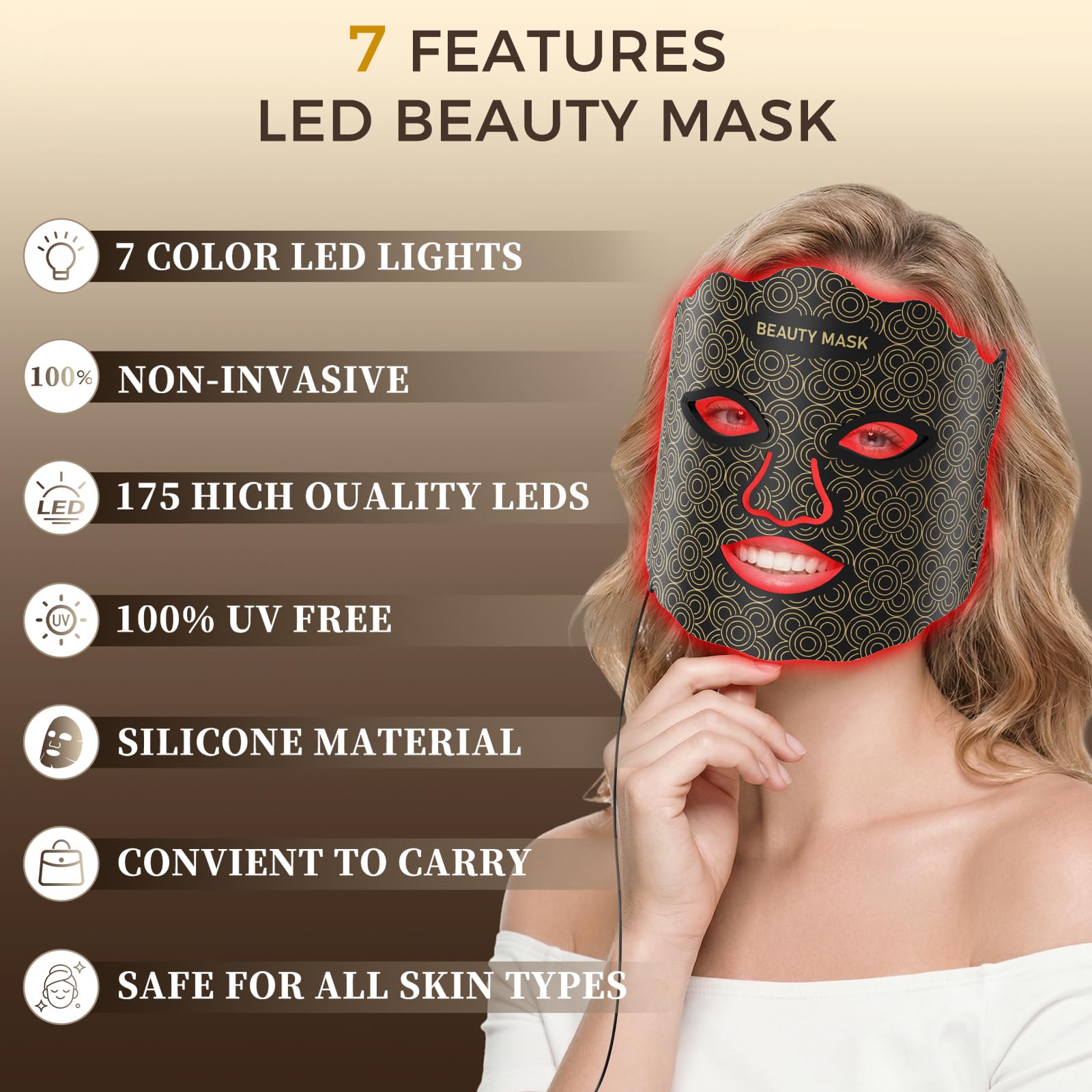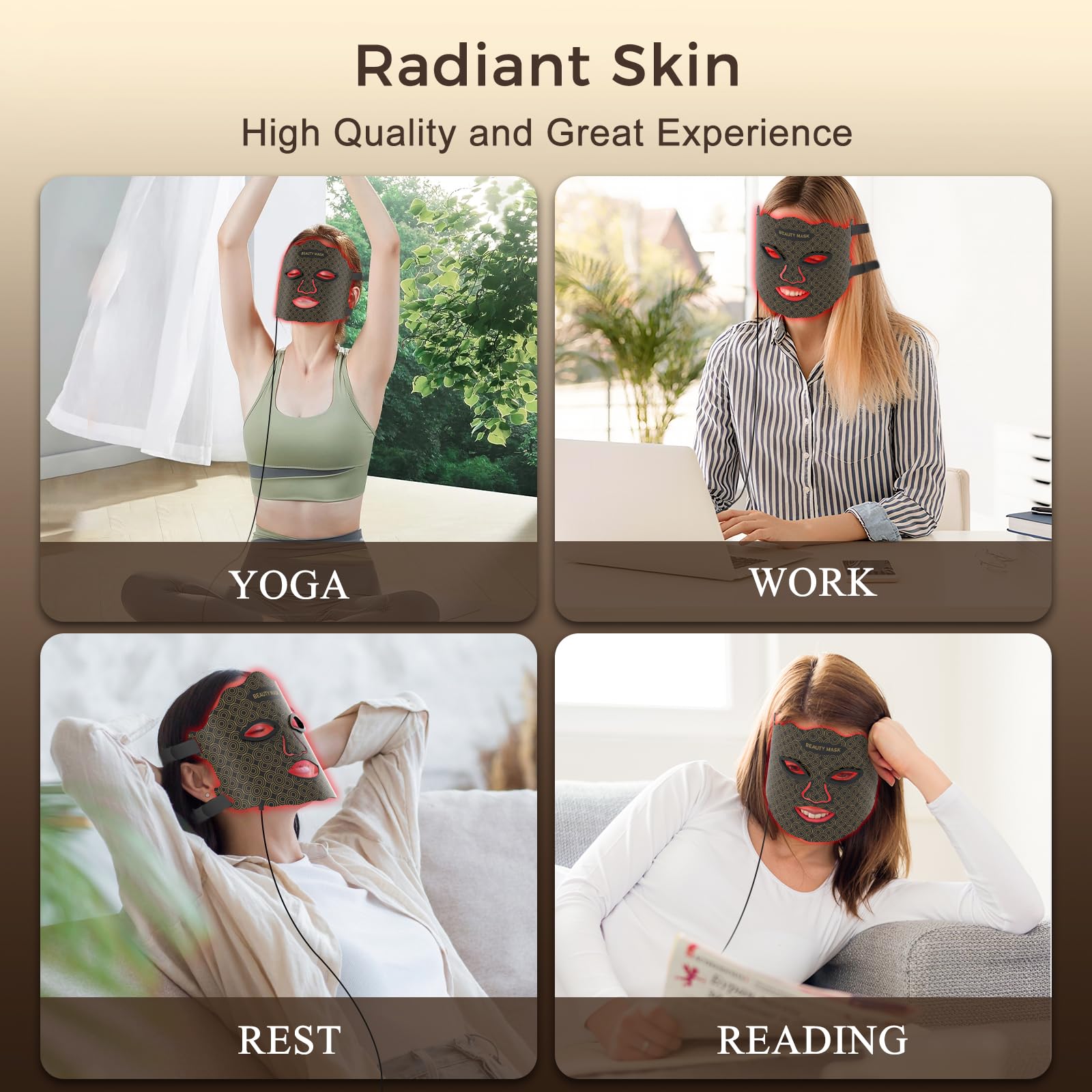 Light Therapy Face Mask: This LED face mask light therapy system utilizes red light therapy for the face, featuring wavelengths specifically tailored to various skin types. Independently controllable NIR and colored lights (including red light) create deep-penetrating waves, ideal for face light therapy devices and red light therapy masks