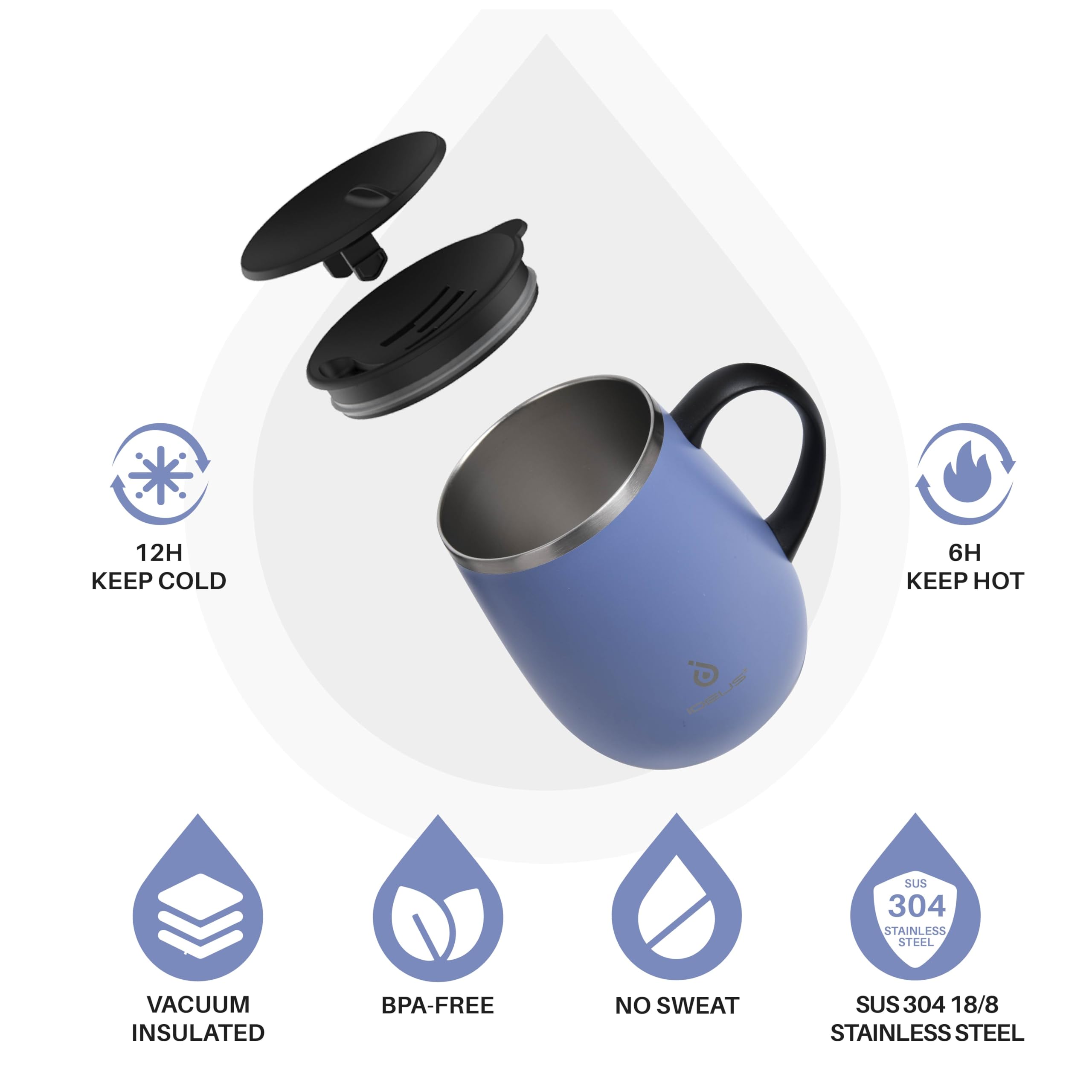 【HEALTHY MATERIAL】- The insulated coffee cup is with premium 304 food-grade stainless steel inside, rust-free, odorless, lead-free. The lid was made of food-grade silicone, BPA-free, guaranteed high durability.