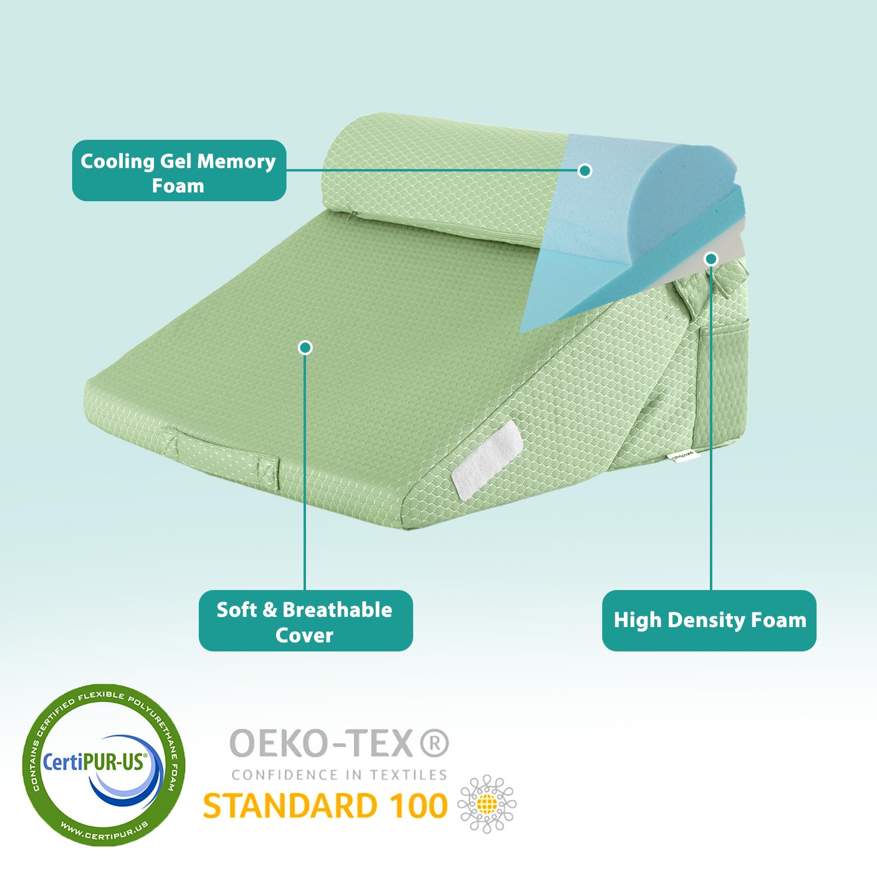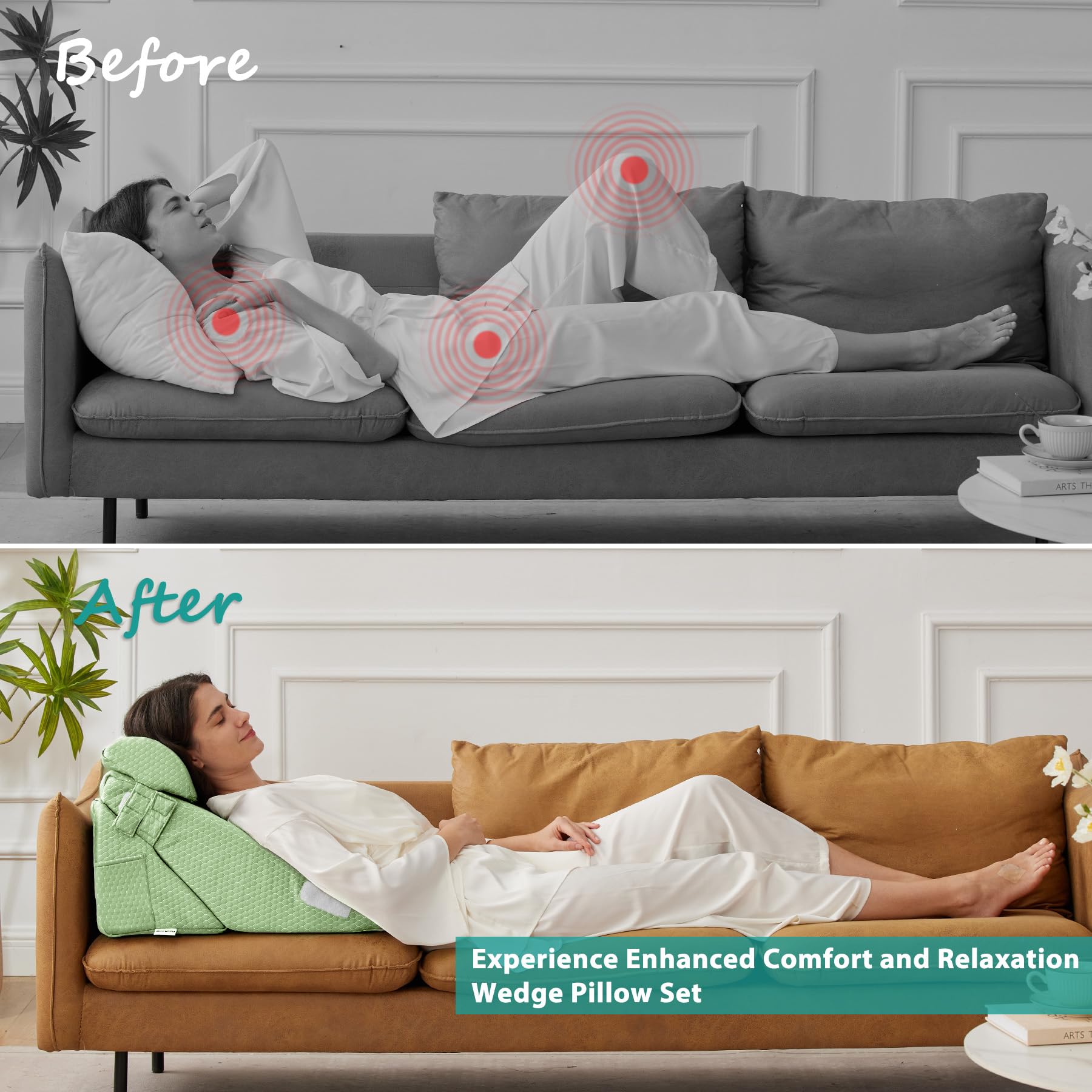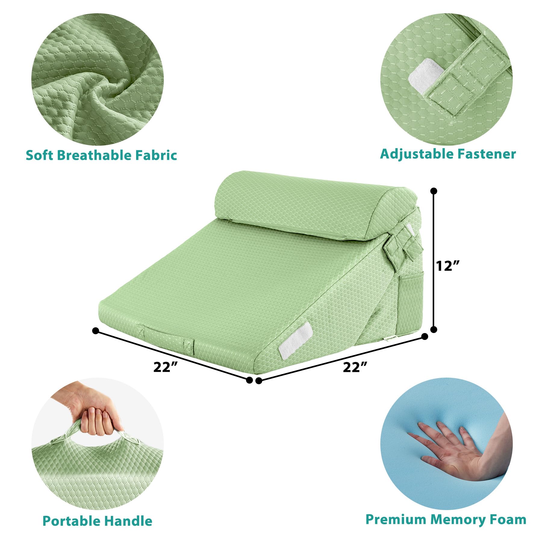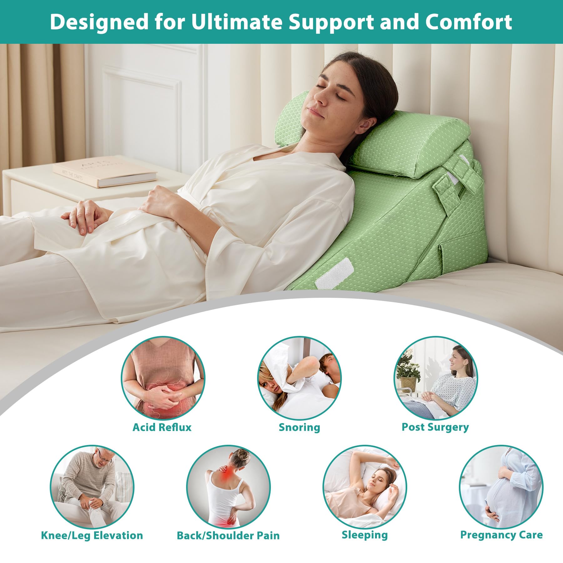 Enhanced Health Support: Designed for improved blood flow, breathing, and reduced snoring, the ergonomic wedge pillow system aid recovery post-surgery, alleviate knee, back and leg pain.