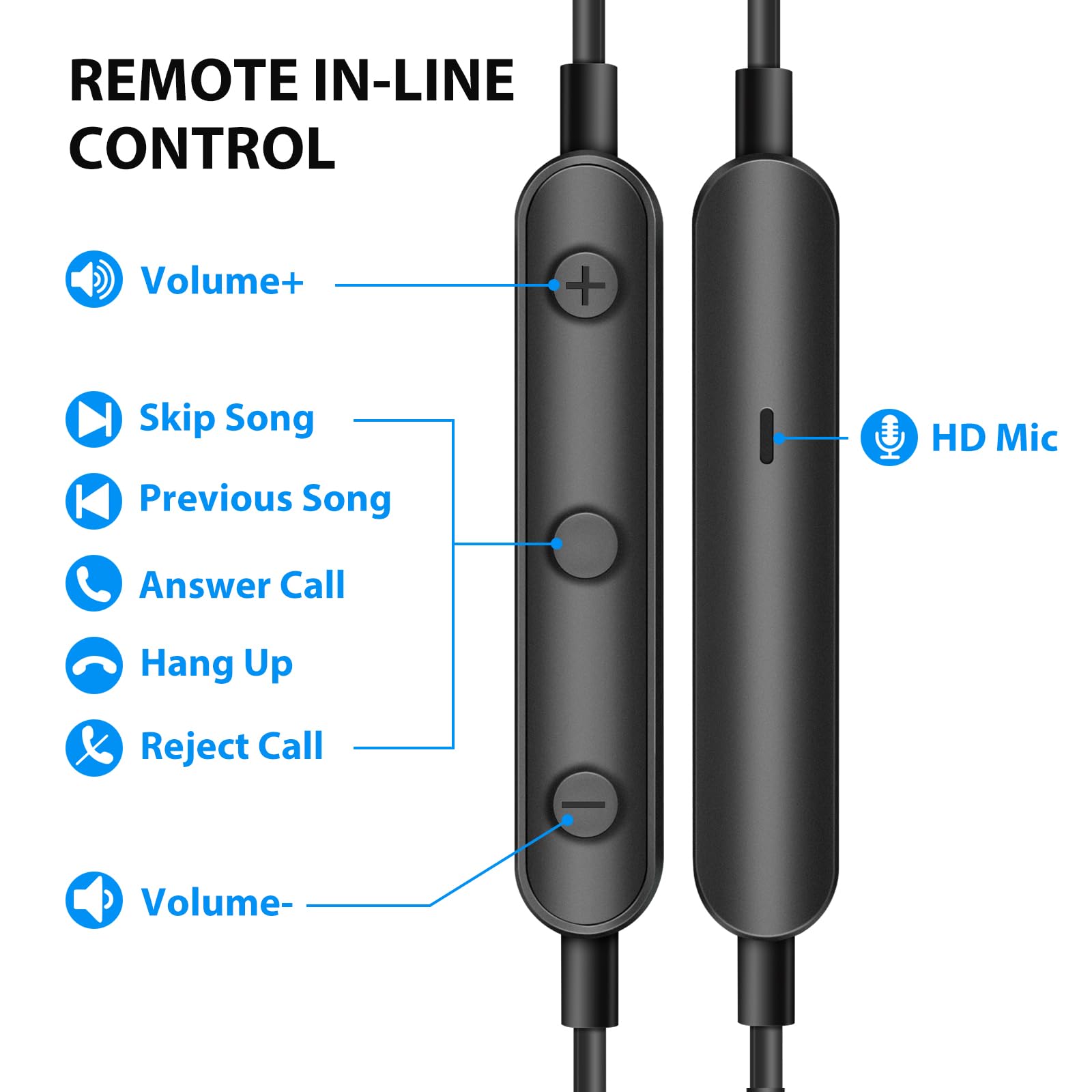 In-Line Control & Built-in Mic : In-line control function,you can pause/play, volume up/down, answer/ hang up the phone, wake up the voice assistant and press the shutter without picking up the phone. It is very suitable for use in multiple scenes such as work, sports, outdoor activities, etc. Newly-upgraded high-sensitivity microphone, multi-directional accurate radio, enhanced voice, and let you enjoy a clearer call