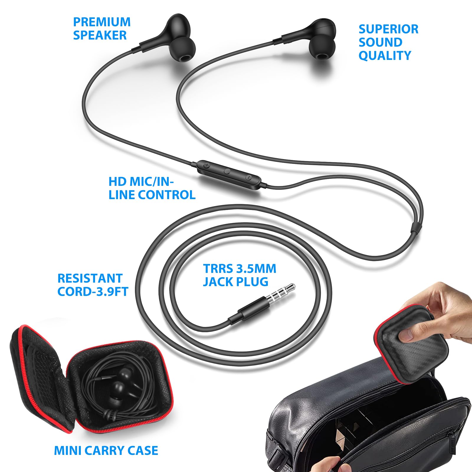 Resistant & Anti-Tangle TPE Cable : The 3.93 ft/1.2 m long resistant wire of these TPE earbuds don’t get tangled. Wherever you go with these wired ear buds, they will always be ready for use without making you bothered
