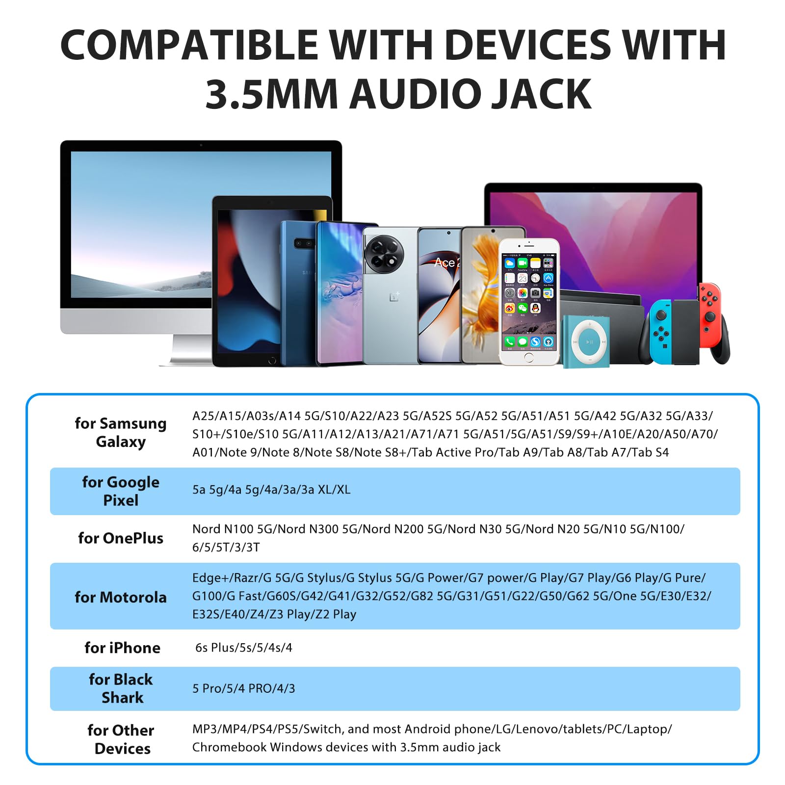 3.5mm Aux Jack Wired Earbuds : 3.5mm audio jack earbuds for Samsung Galaxy A25/A15//S10/S10e/S9/S8/A14/A13/A23/A21/A30s/A03 Core/A52/A42/A32/A71/A51/A21/A11/A50/A20/Note 9/8,for Google Pixel 5a/4a/3a/XL,for Motorola G Stylus/G Power/G Play/G 5G 2023/One 5G Ace/MOTO G100/razr/one,for iPhone 6s/6/5s/5/SE 1st,for iPad Pro 12.9"/10.5"/9.7",for iPad 9/8/7/6/5/4/3,for iPad mini 5/4/3/2/1,for iPad Air 3/2/1,MP4,MP3,,for OnePlus Nord N300/N200/6/5T/5/3T/3,and other 3.5mm jack mobile