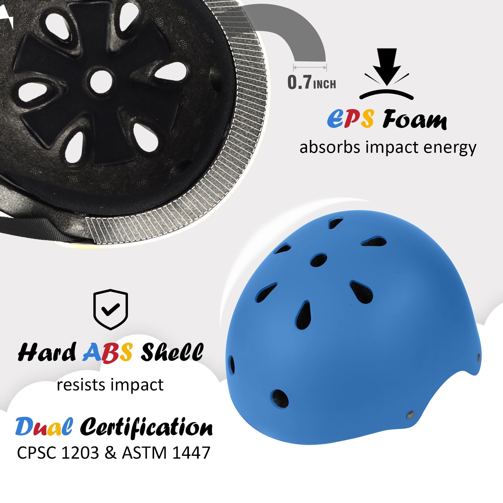 ABS shell resists impact and high quality EPS foam provides shock-absorbing. Complies with U.S. Consumer Product Safety Commission Safety Standard for Bicycle Helmets for Persons Age 5 and Older