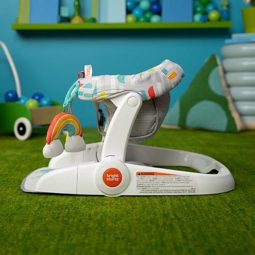 Bright Starts Learn-to-Sit 2-Position Floor Seat supports baby as they learn to sit independently; grow-with-me design allows for earlier use in lower position when baby can hold up their head independently; ideal for ages 4-12 months