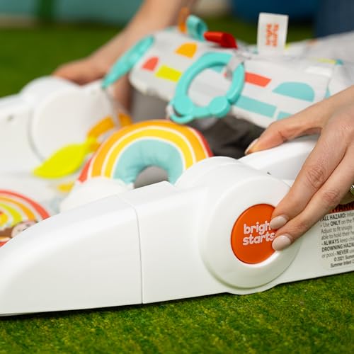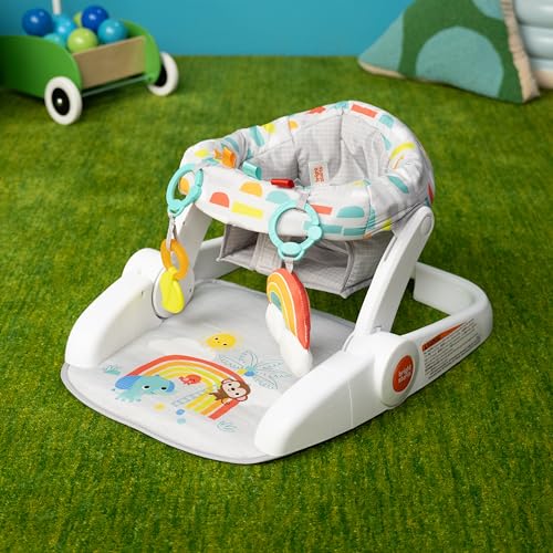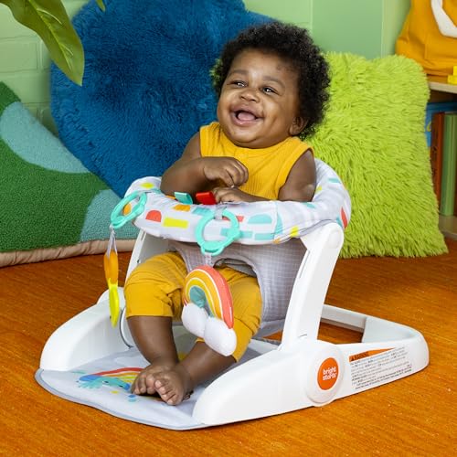 Give baby a front row seat to all the family action with the Learn-to-Sit 2-Position Floor Seat from Bright Starts! This baby seat bridges the gap from bouncer to booster seat as baby learns to sit up independently. In the lower position, younger babies can sit comfortably and safely when they can hold up their head independently (around 4 months old). Older babies can use the upright position to provide comfortable support as they learn to sit on their own. Designed for baby’s comfort, this floor seat features a padded seat and plenty of leg room. The high seat back offers additional support, helping prepare them to sit independently. The Learn-to-Sit also entertains baby while freeing up more hands-free time. Includes a soft rainbow toy and textured leaf toy, plus looped Taggies ribbons for entertainment and comfort. Easy to bring on the go as a travel baby seat – just fold flat for travel or storage! Seat pad is removable and machine washable. This grow-with-me floor seat is ideal for babies 4 – 12 months. Discontinue use when baby is able to climb or walk.